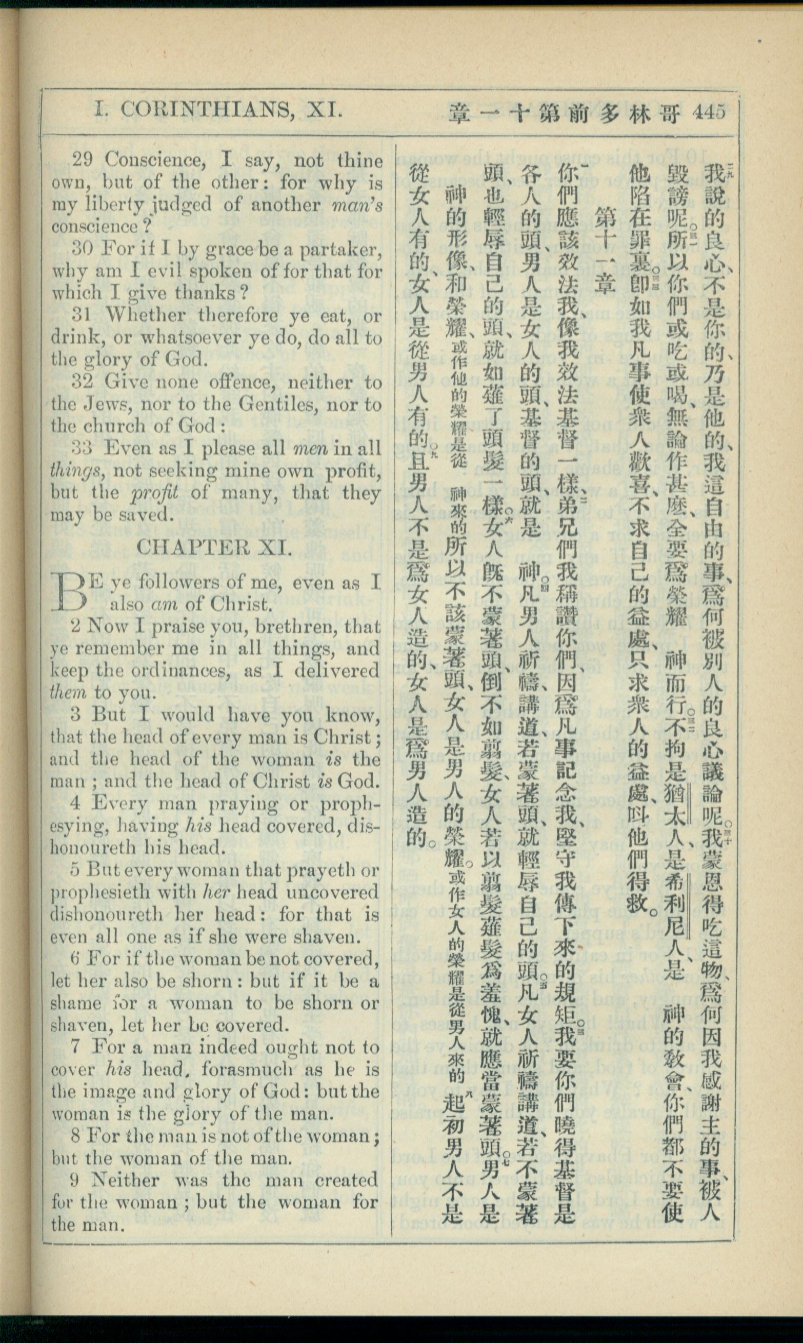 1908年新約全書(中西字) 哥林多前書 10 章 29 節到 11 章 9 節
