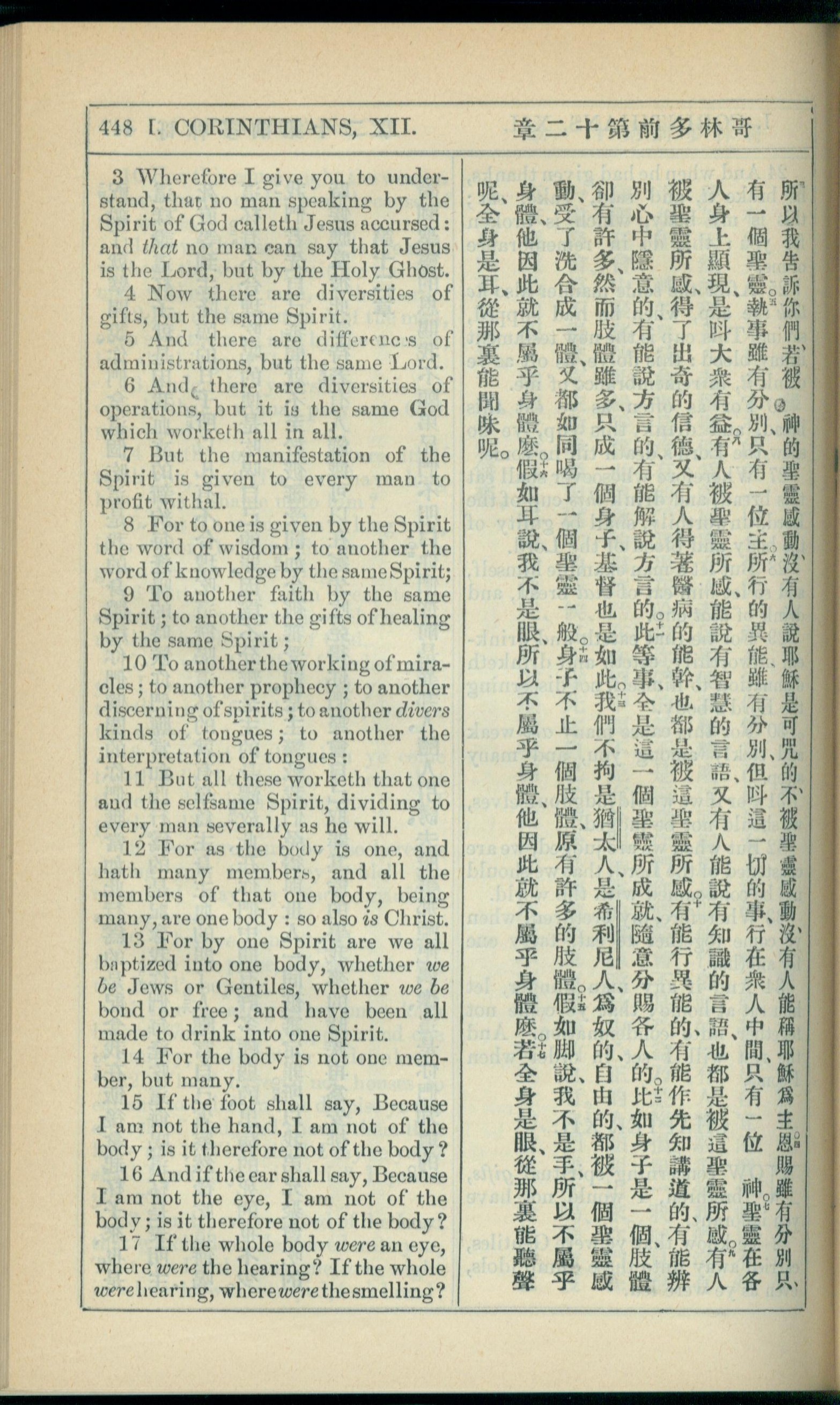 1908年新約全書(中西字) 哥林多前書 12 章 3 節到 12 章 17 節