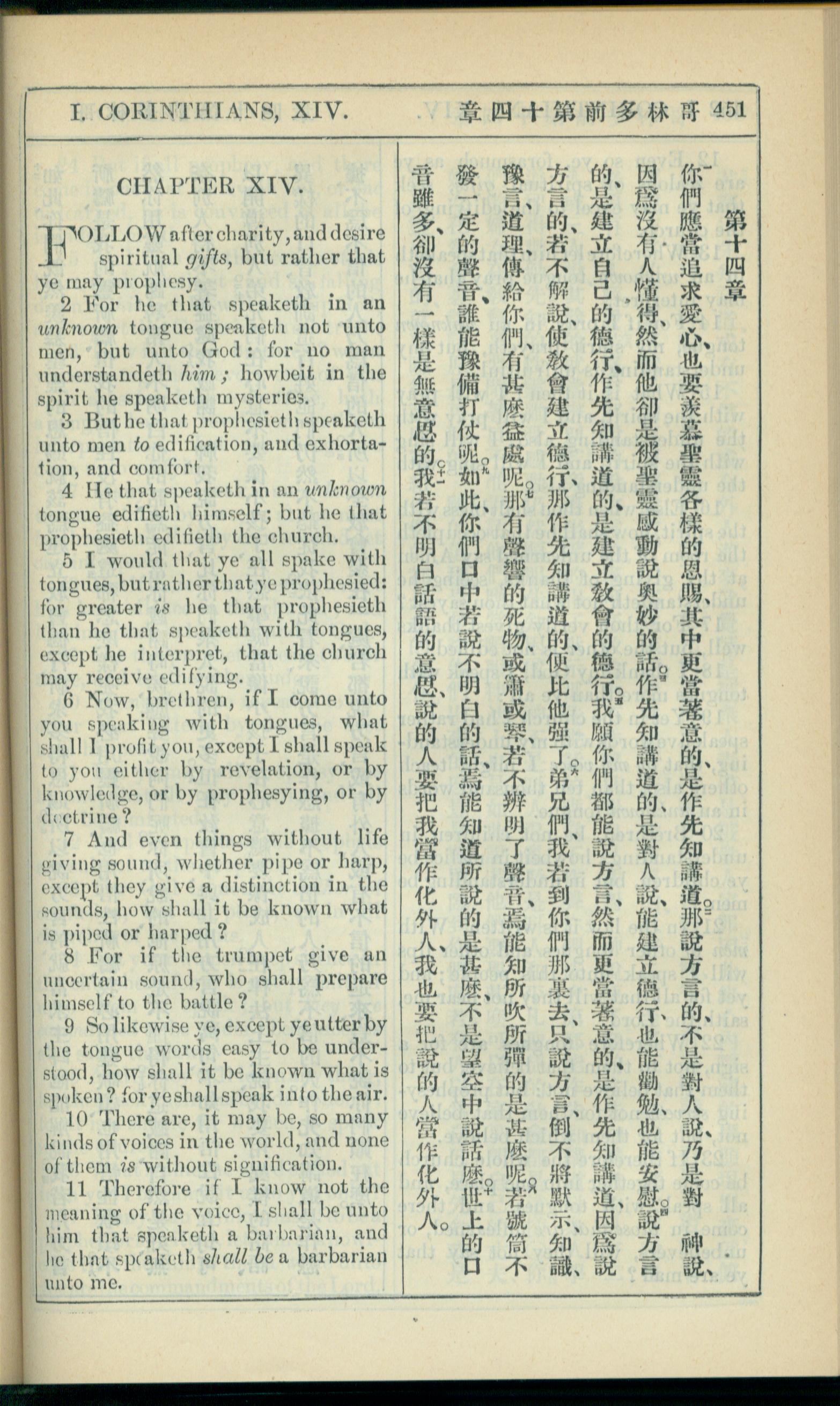 1908年新約全書(中西字) 哥林多前書 14 章 1 節到 14 章 11 節