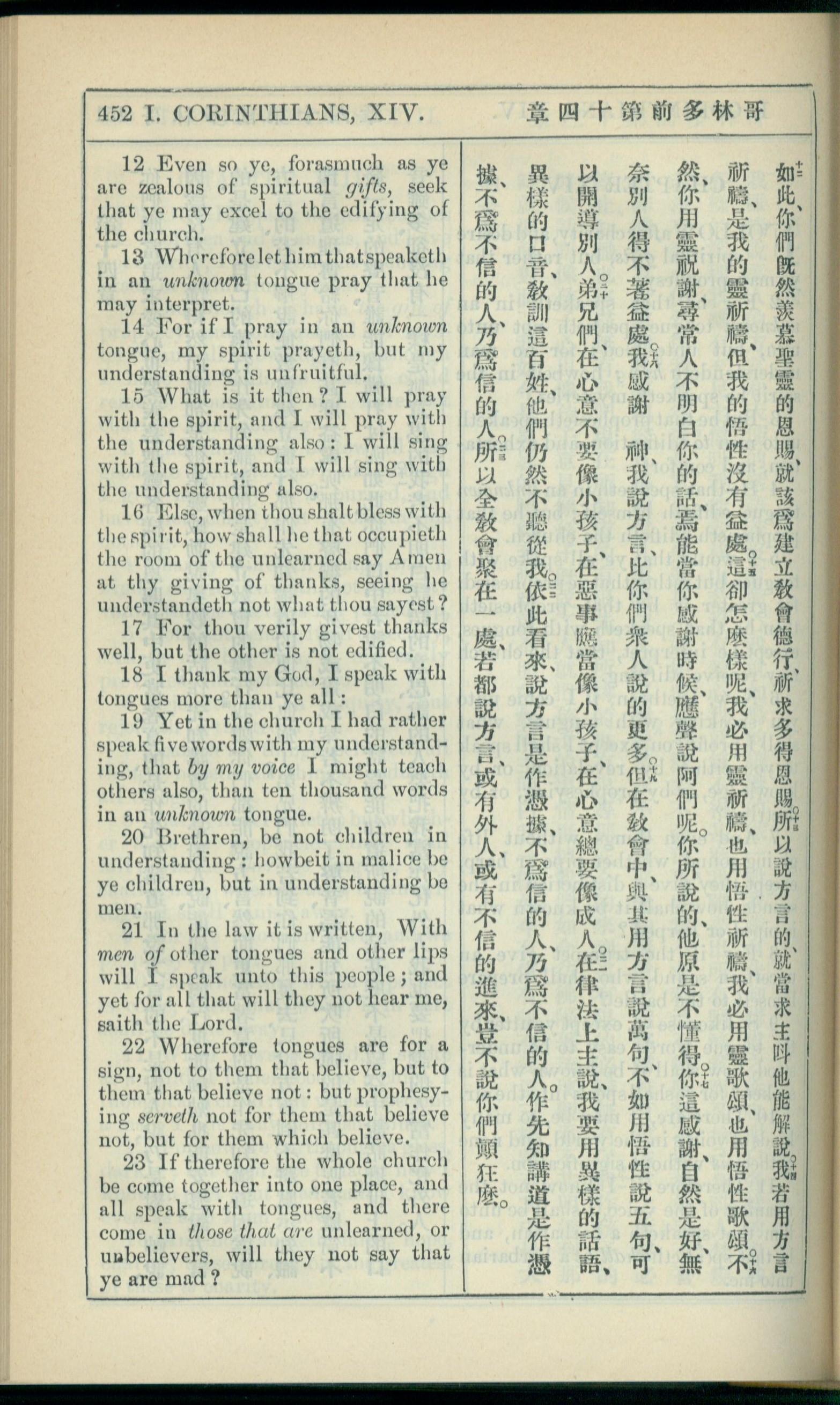 1908年新約全書(中西字) 哥林多前書 14 章 12 節到 14 章 23 節