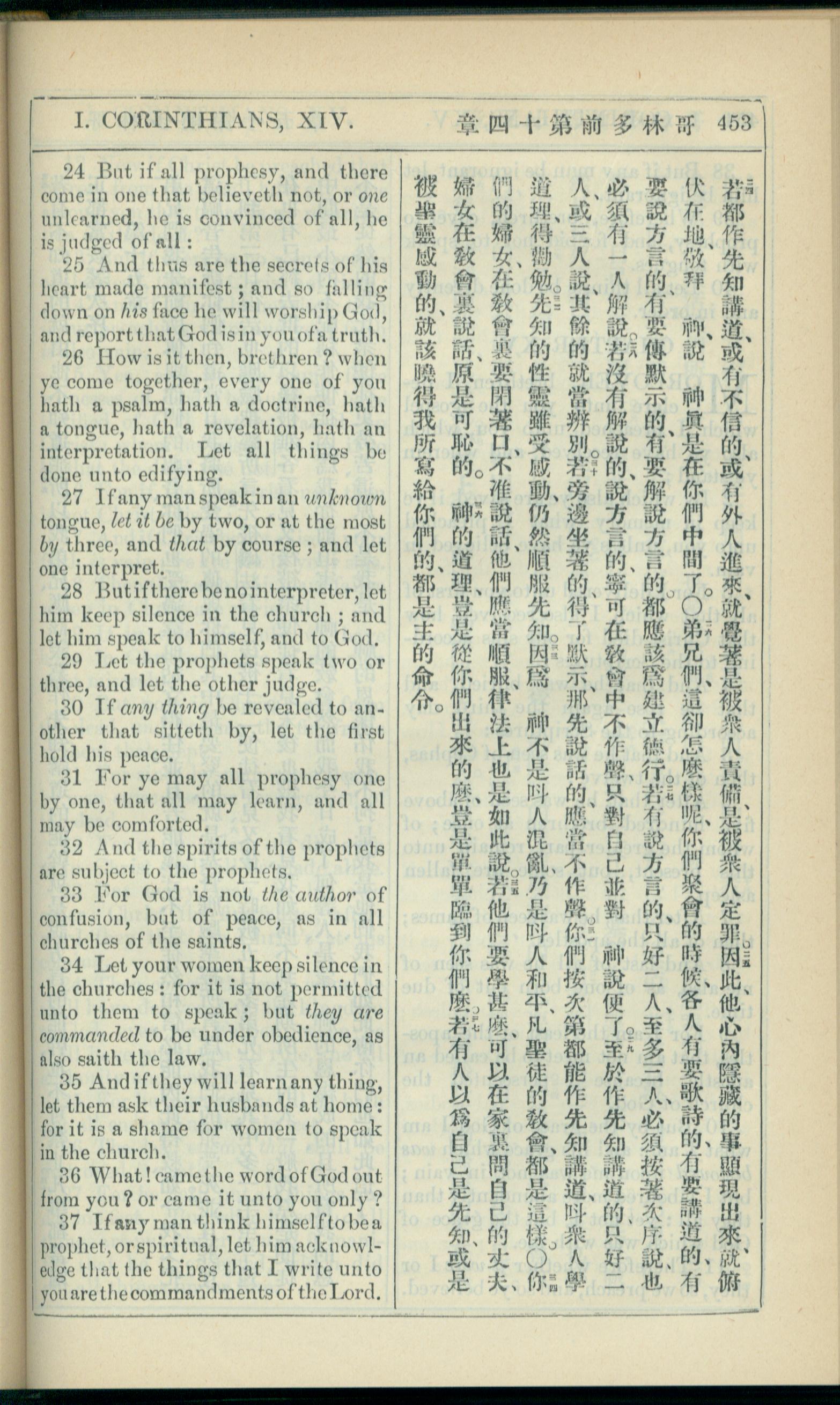 1908年新約全書(中西字) 哥林多前書 14 章 24 節到 14 章 37 節