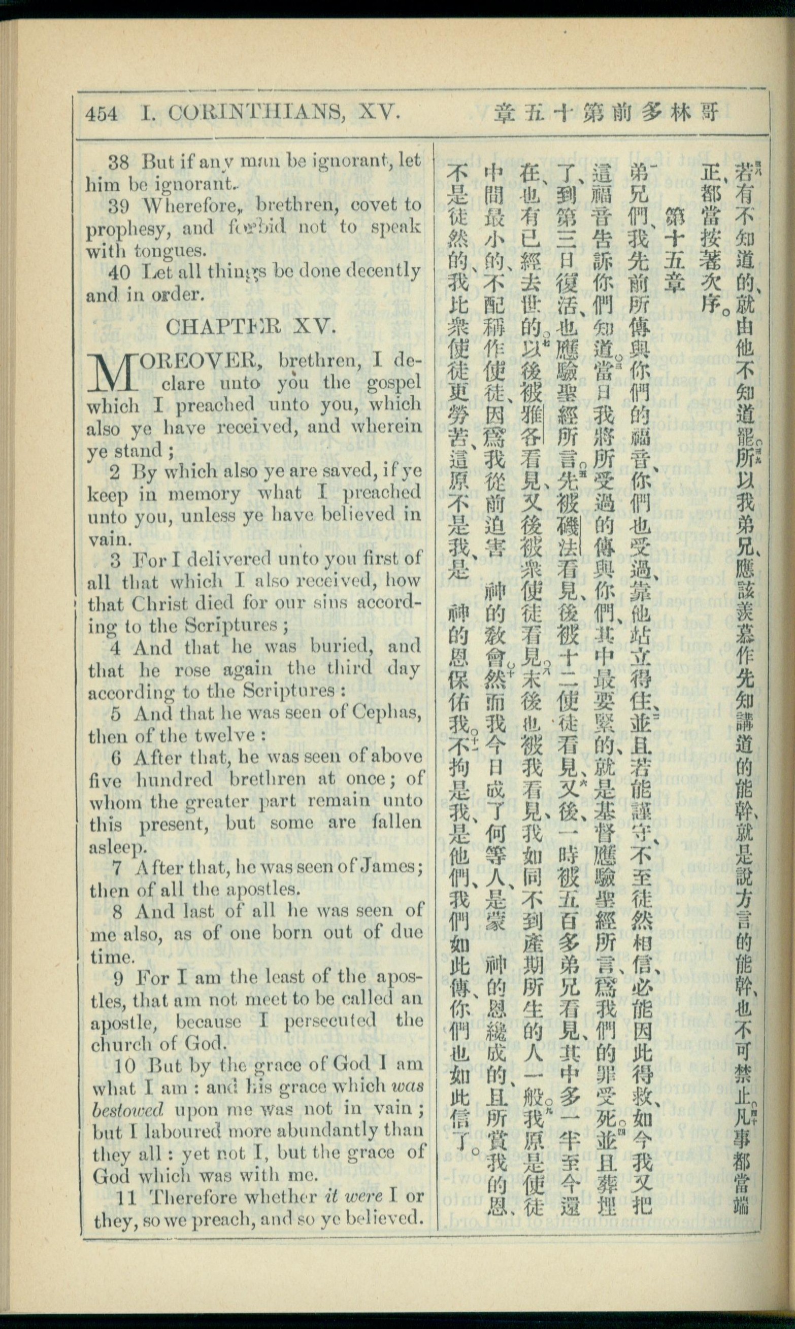 1908年新約全書(中西字) 哥林多前書 14 章 38 節到 15 章 11 節