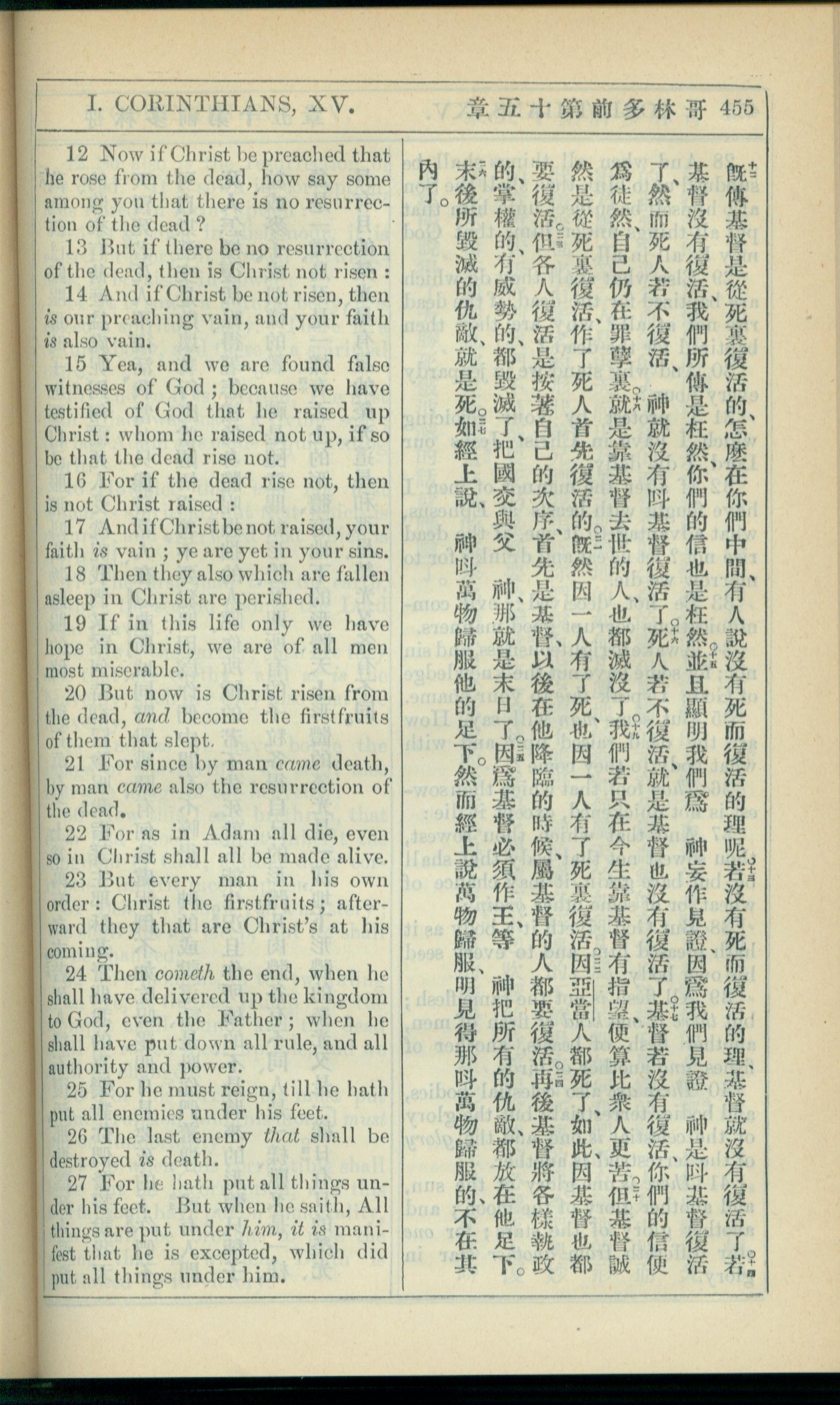 1908年新約全書(中西字) 哥林多前書 15 章 12 節到 15 章 27 節