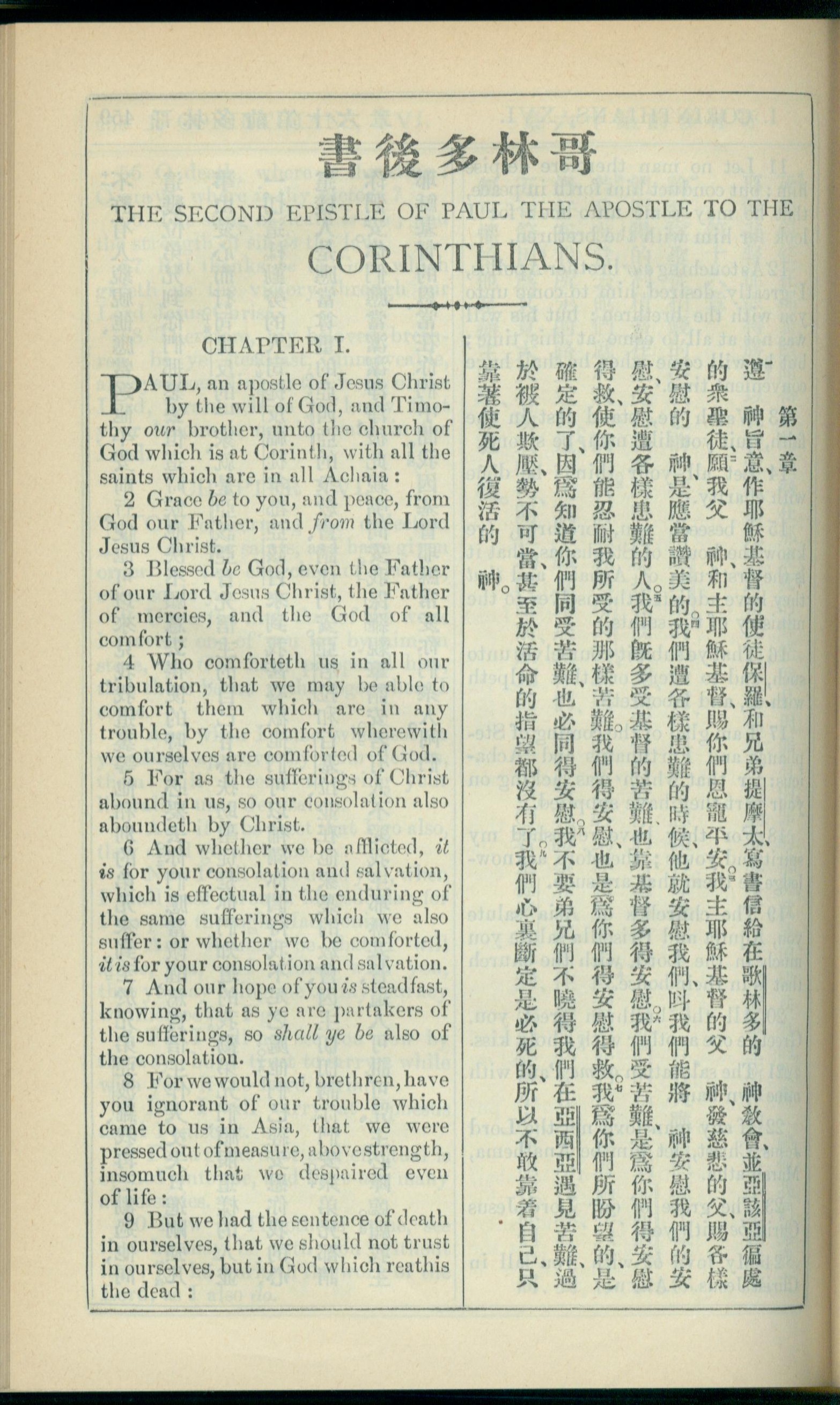 1908年新約全書(中西字) 哥林多後書 1 章 1 節到 1 章 9 節