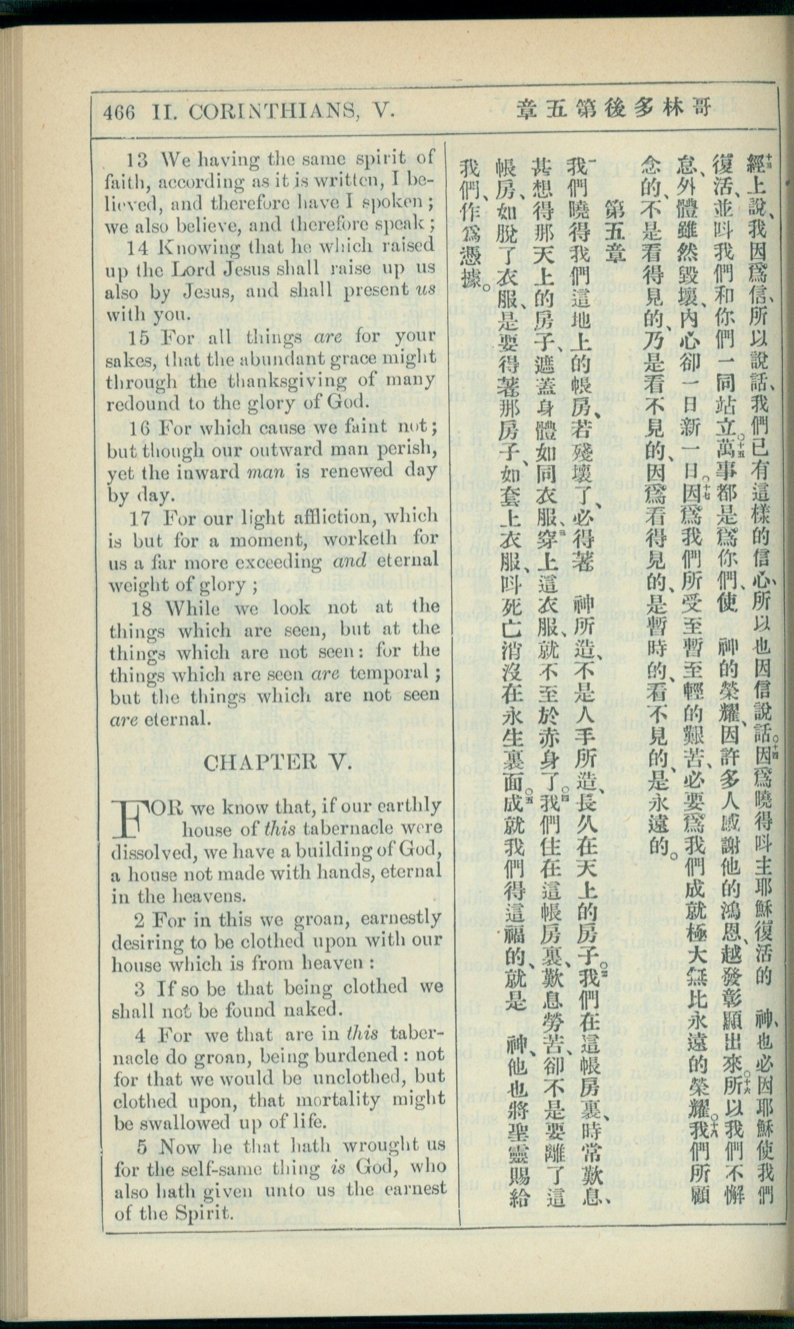 1908年新約全書(中西字) 哥林多後書 4 章 13 節到 5 章 5 節