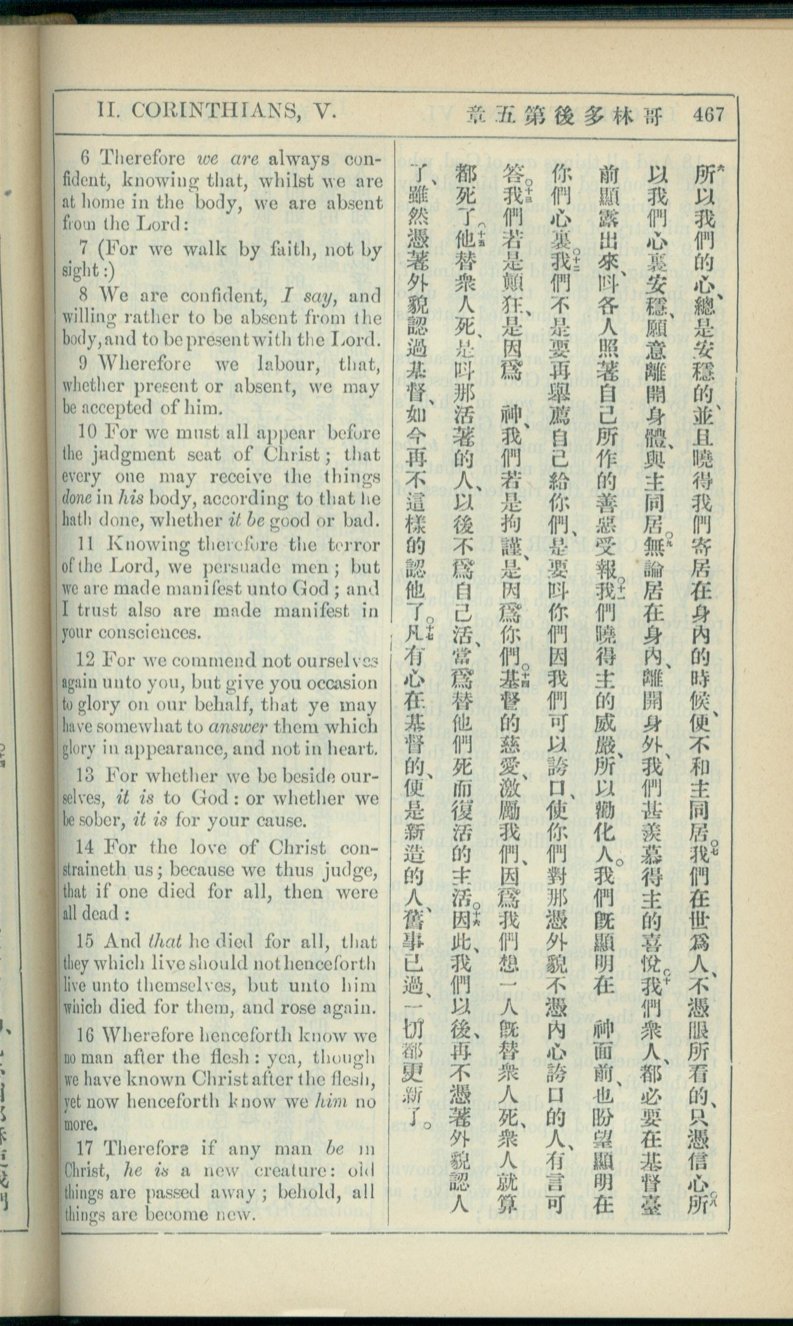 1908年新約全書(中西字) 哥林多後書 5 章 6 節到 5 章 17 節