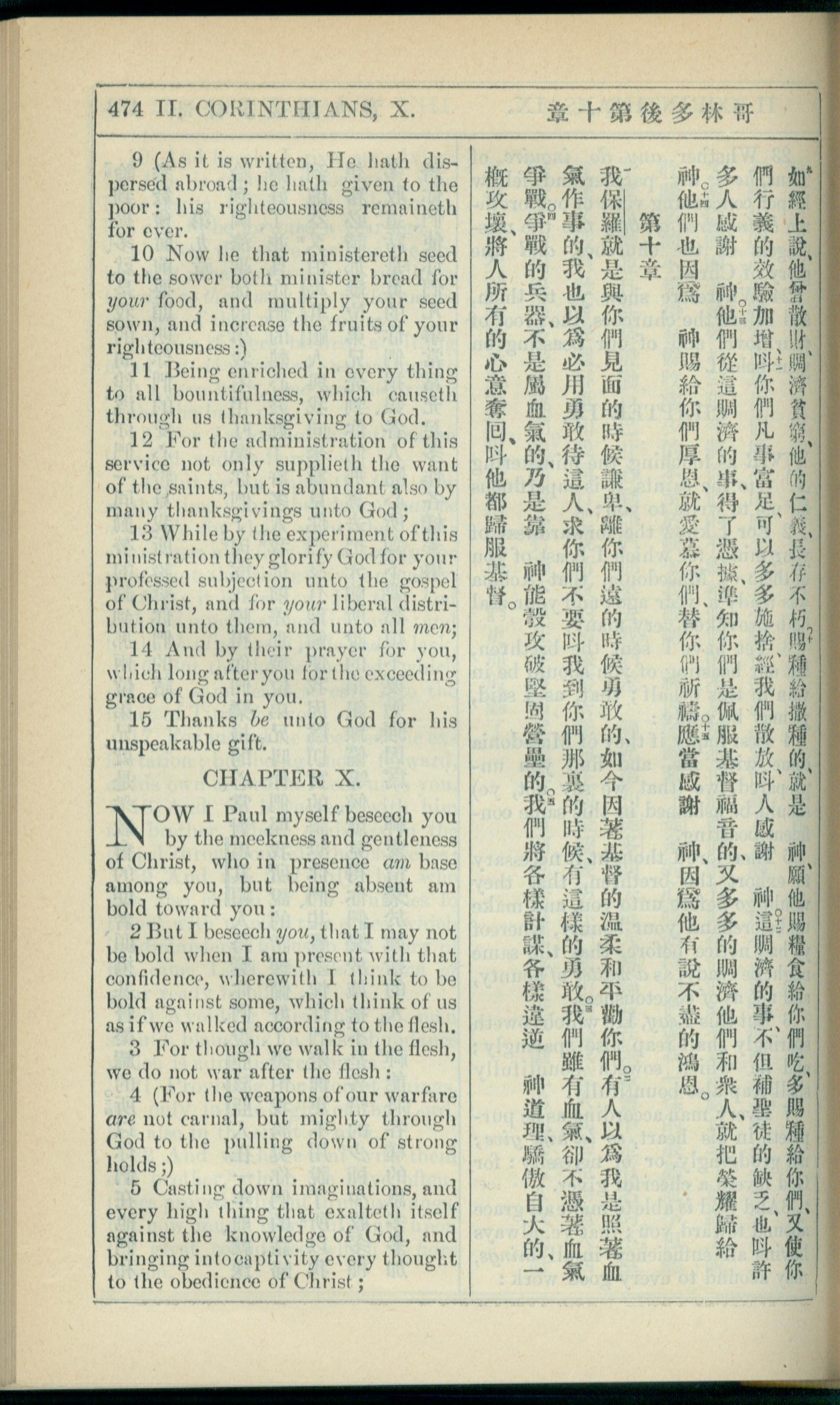 1908年新約全書(中西字) 哥林多後書 9 章 9 節到 10 章 5 節