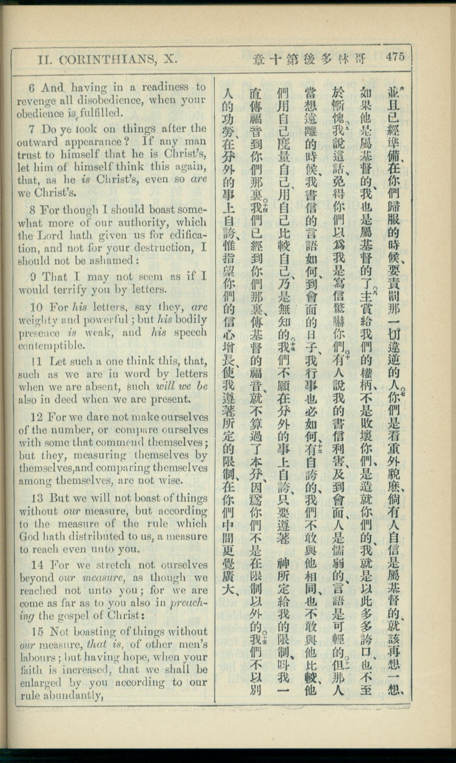 1908年新約全書(中西字) 哥林多後書 10 章 6 節到 10 章 15 節
