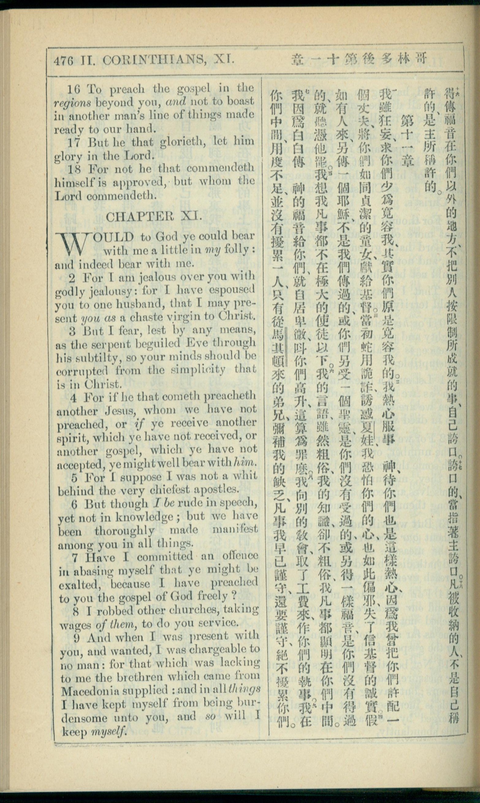 1908年新約全書(中西字) 哥林多後書 10 章 16 節到 11 章 9 節