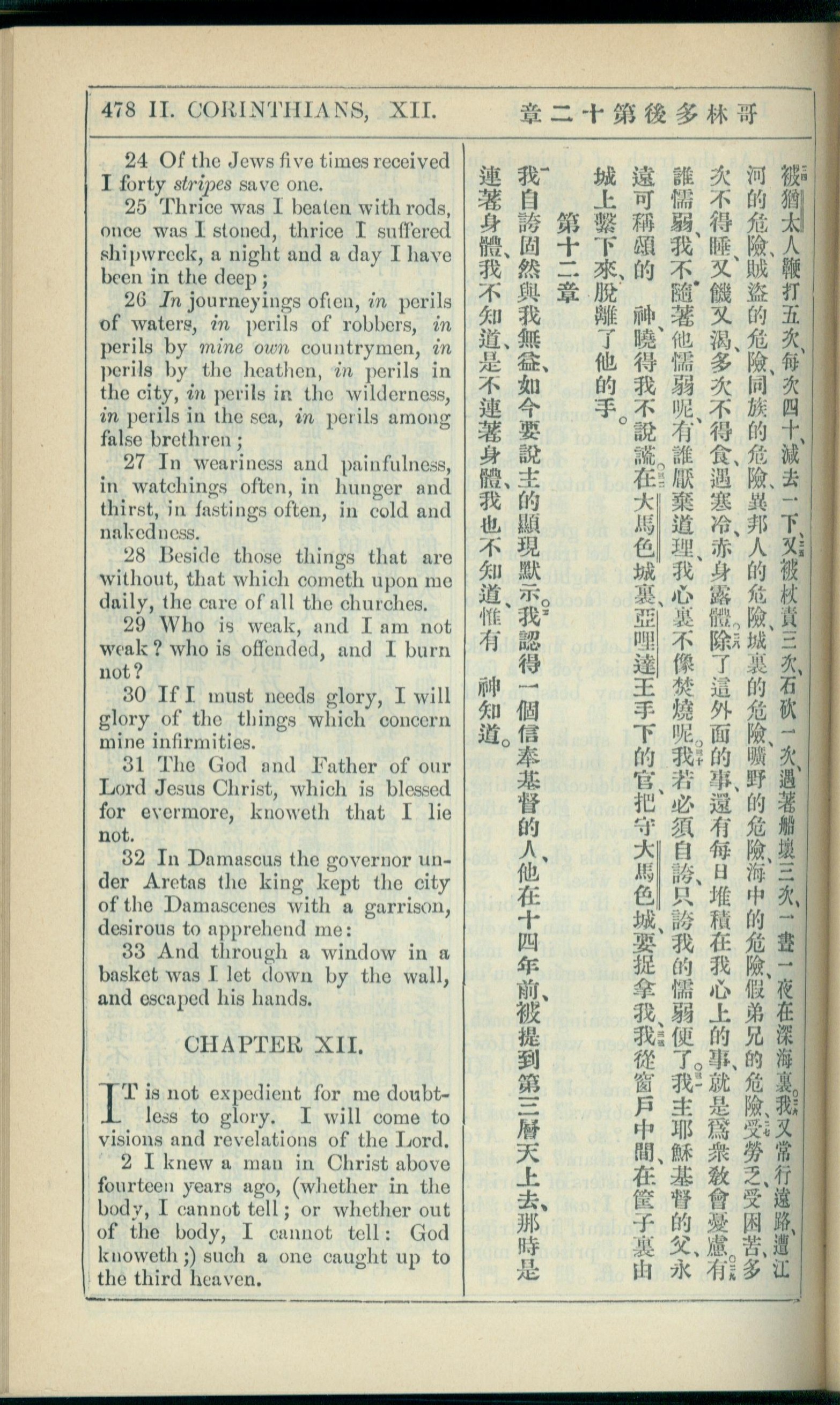 1908年新約全書(中西字) 哥林多後書 11 章 24 節到 12 章 2 節