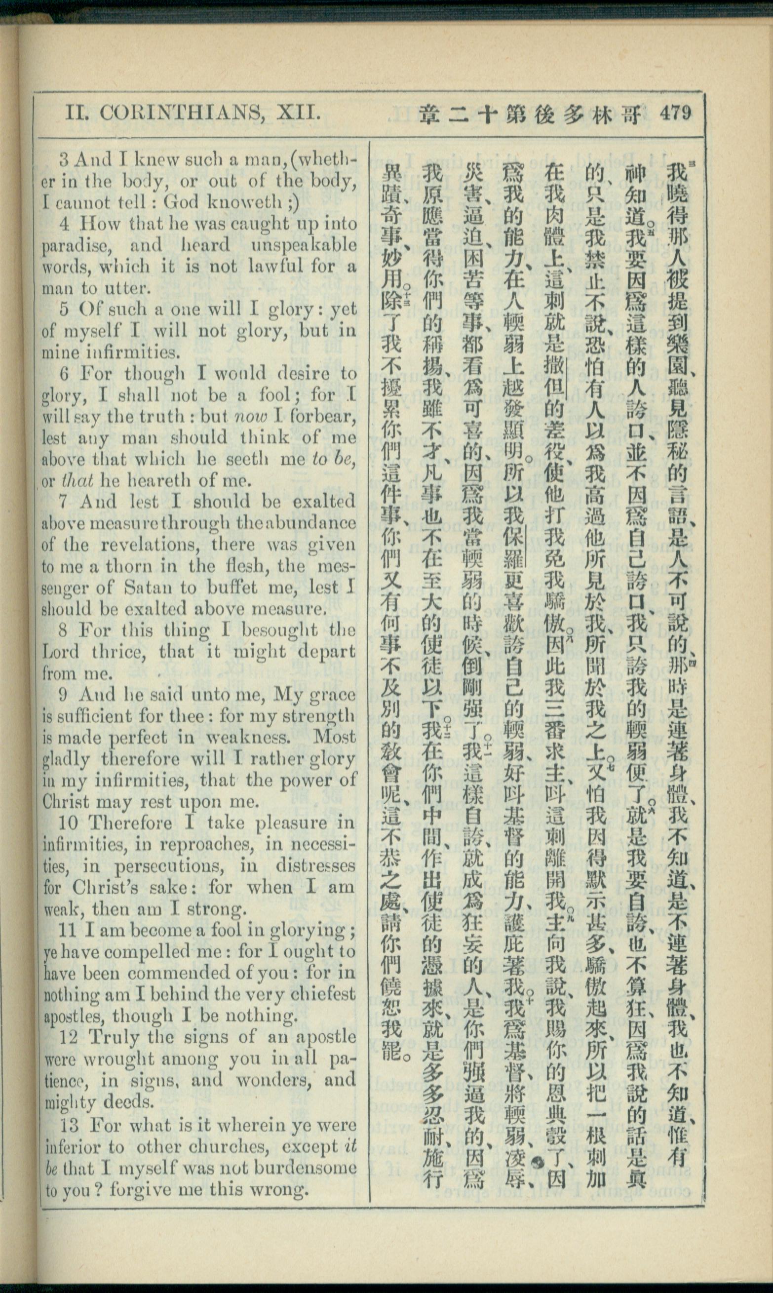 1908年新約全書(中西字) 哥林多後書 12 章 3 節到 12 章 13 節