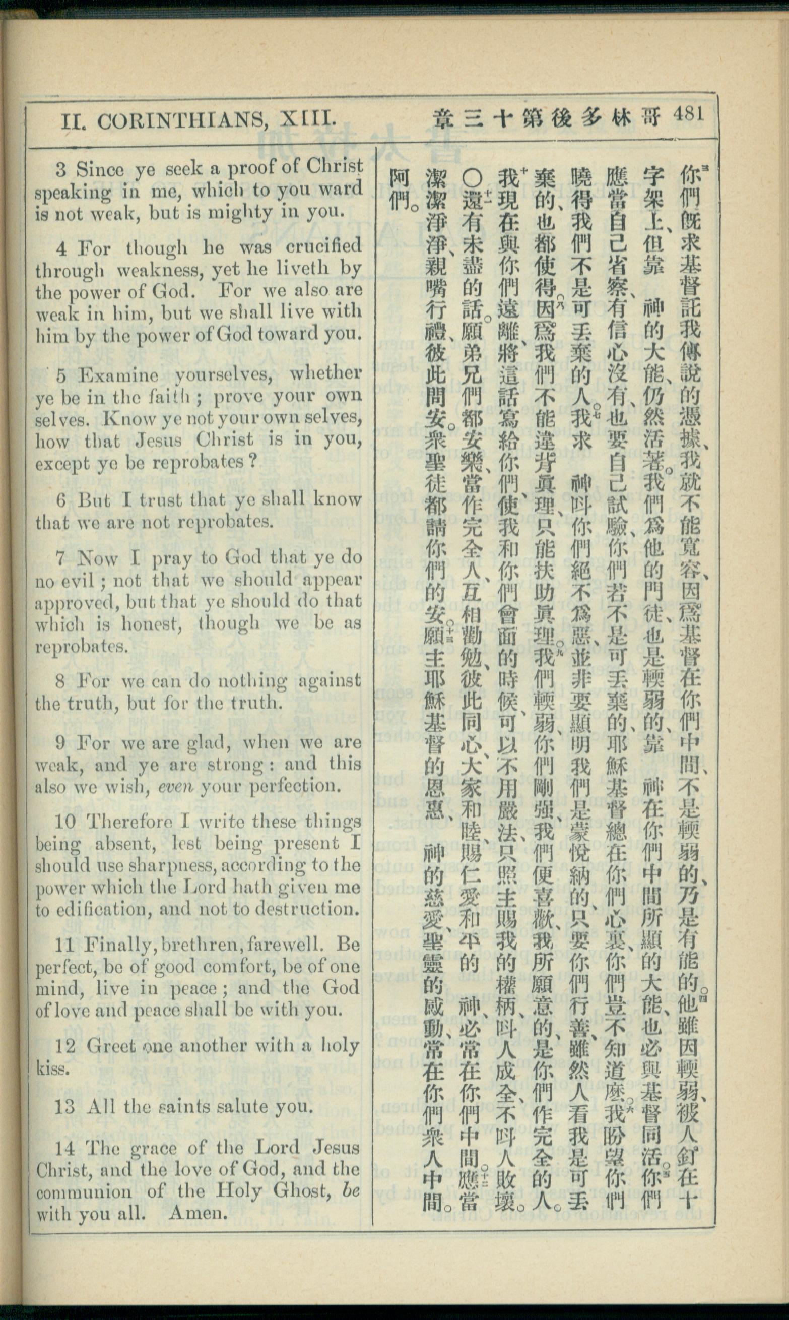 1908年新約全書(中西字) 哥林多後書 13 章 3 節到 13 章 14 節