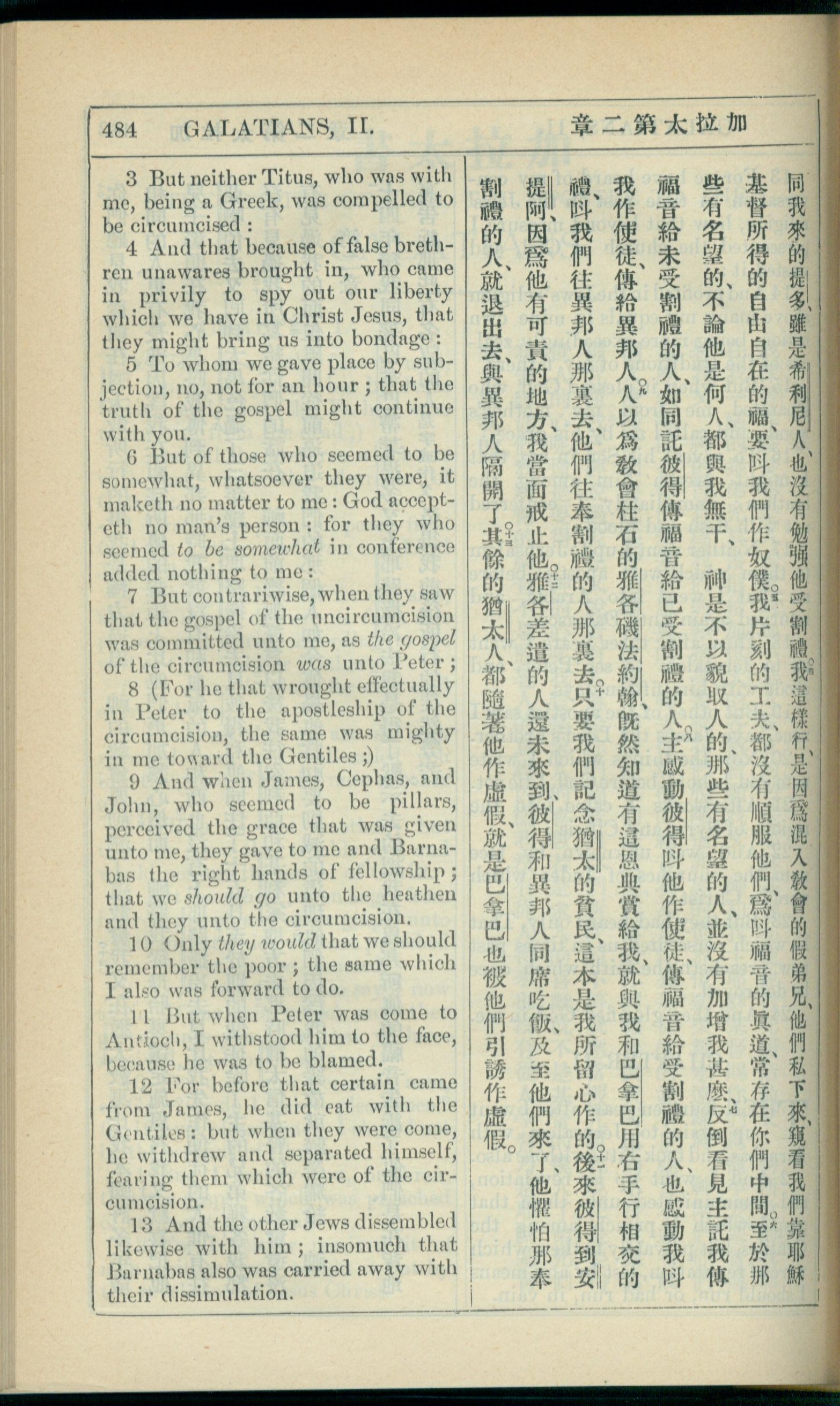 1908年新約全書(中西字) 加拉太書 2 章 3 節到 2 章 13 節