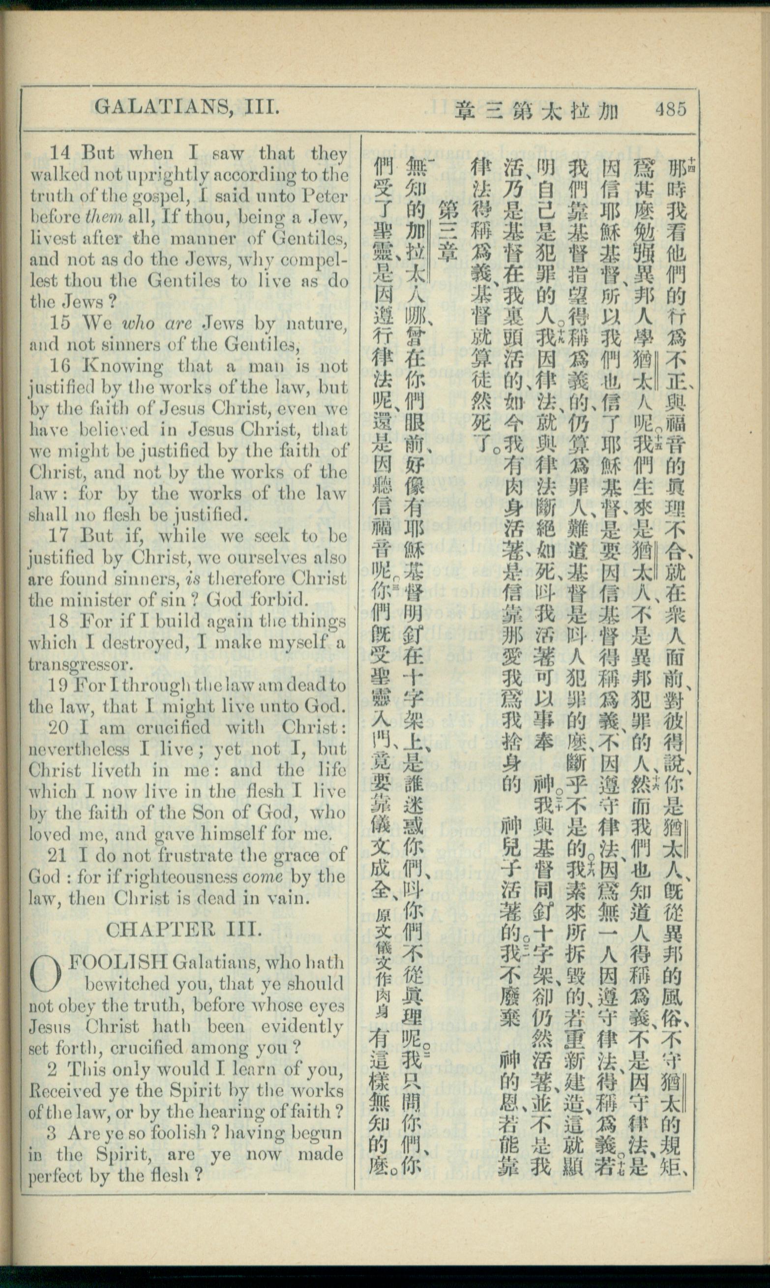 1908年新約全書(中西字) 加拉太書 2 章 14 節到 3 章 3 節