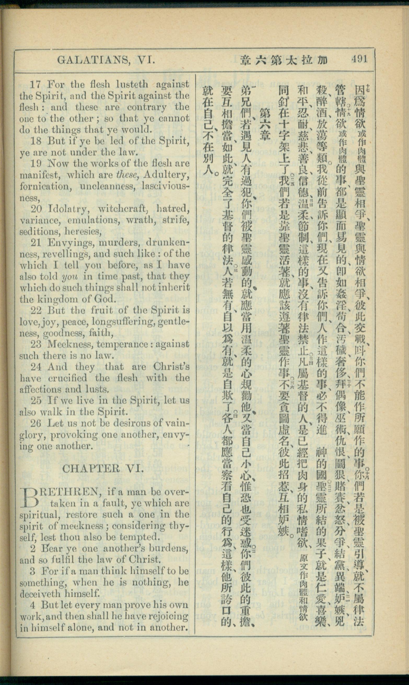 1908年新約全書(中西字) 加拉太書 5 章 17 節到 6 章 4 節