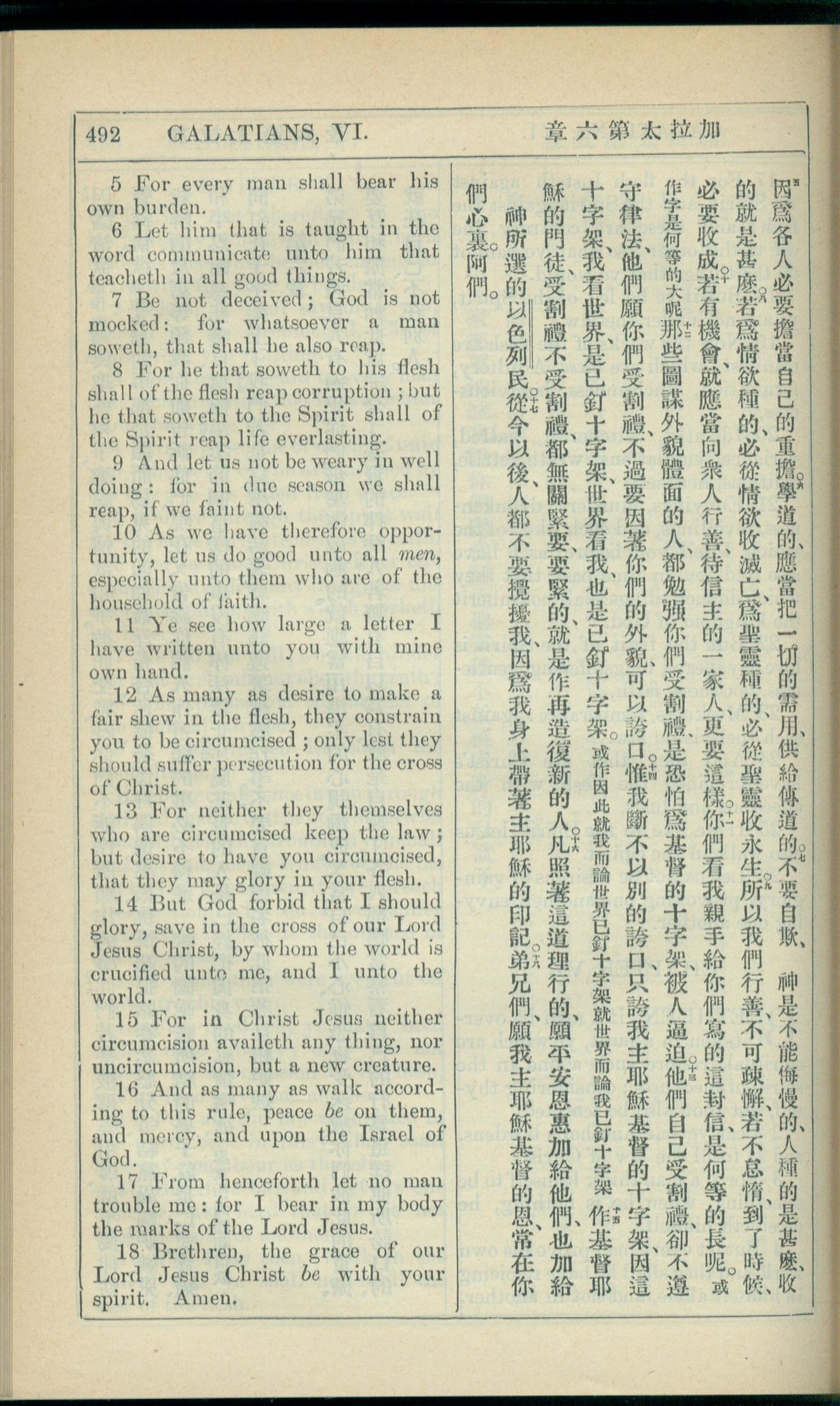 1908年新約全書(中西字) 加拉太書 6 章 5 節到 6 章 18 節