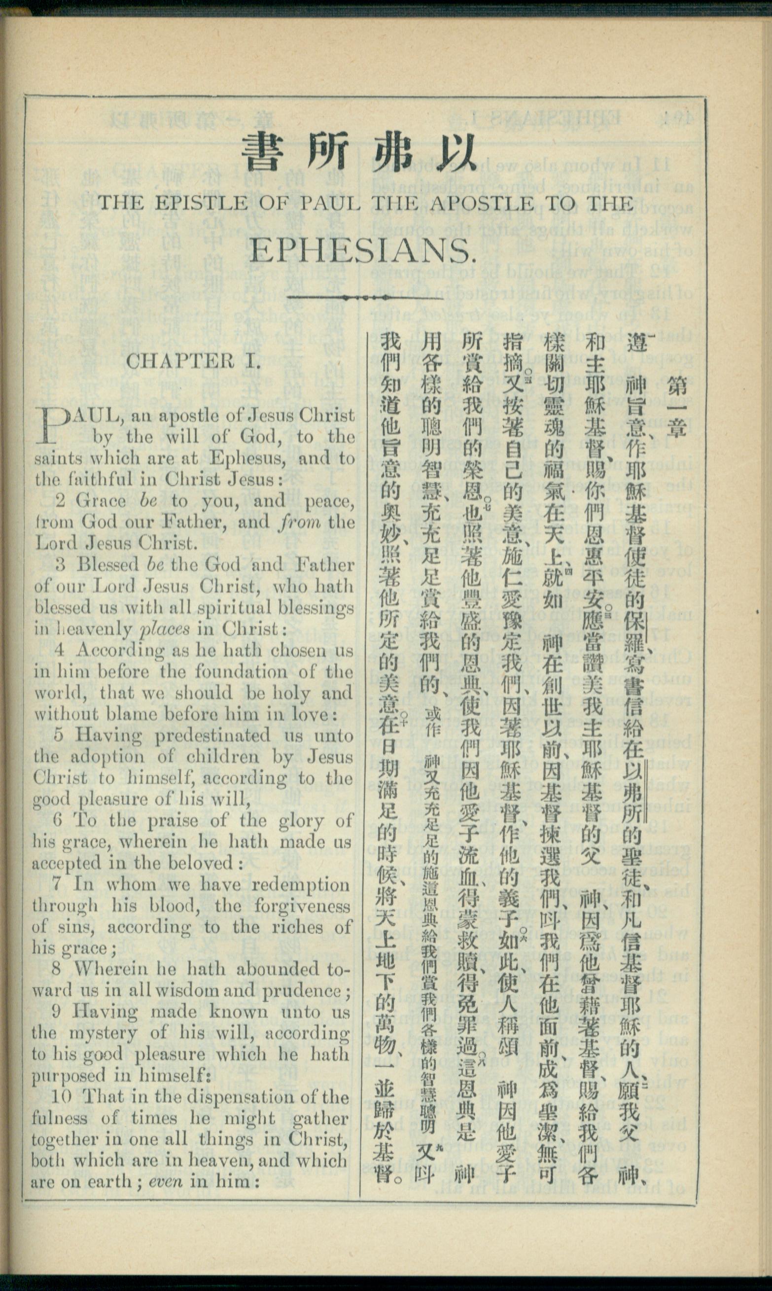 1908年新約全書(中西字) 以弗所書 1 章 1 節到 1 章 10 節
