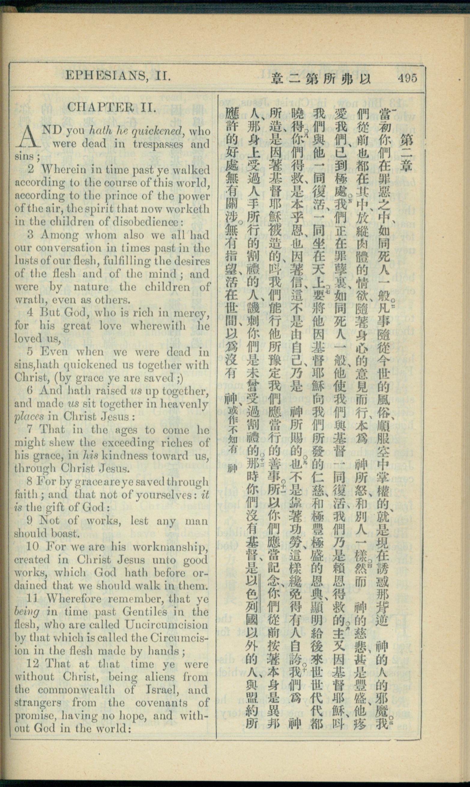 1908年新約全書(中西字) 以弗所書 2 章 1 節到 2 章 12 節