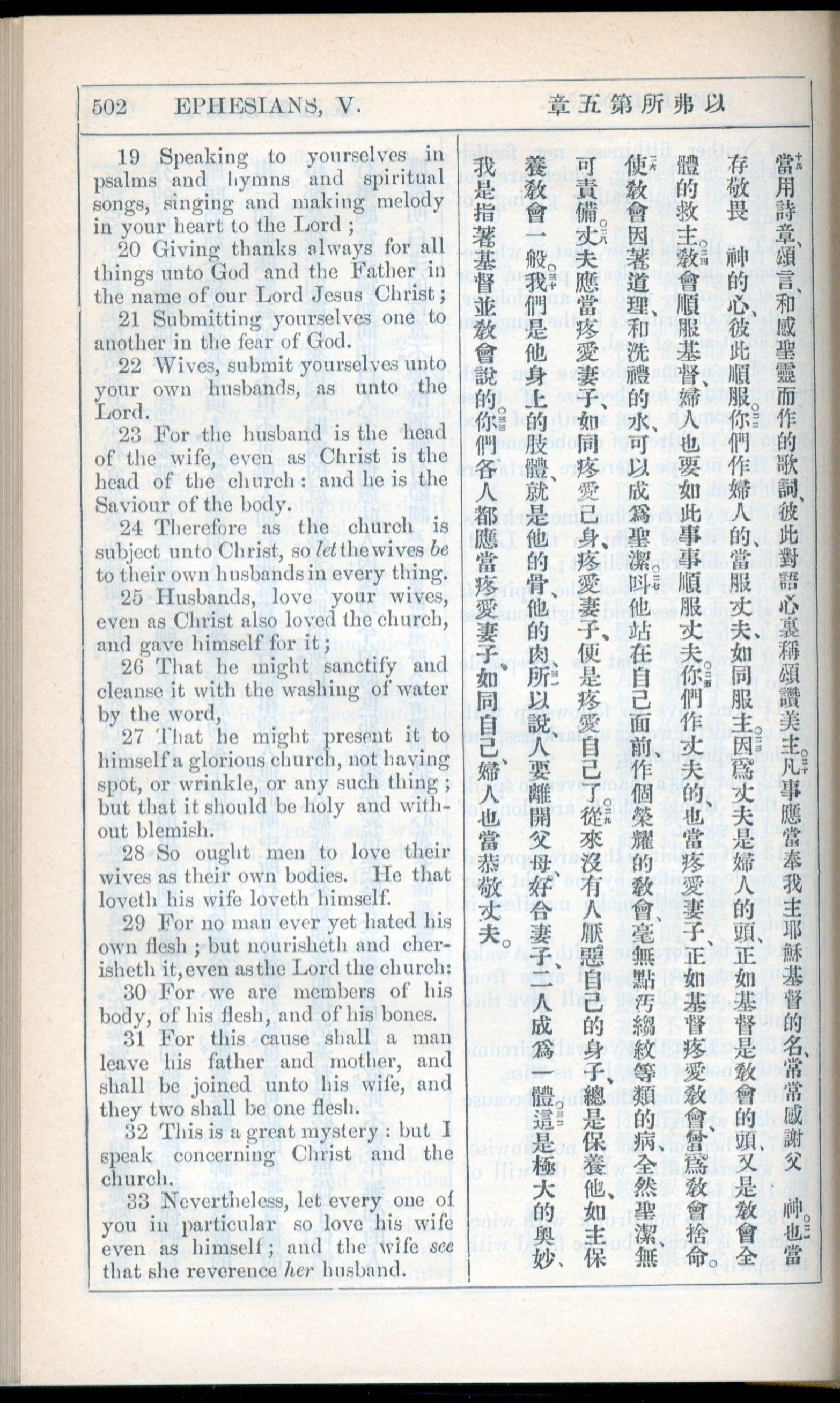 1908年新約全書(中西字) 以弗所書 5 章 19 節到 5 章 33 節