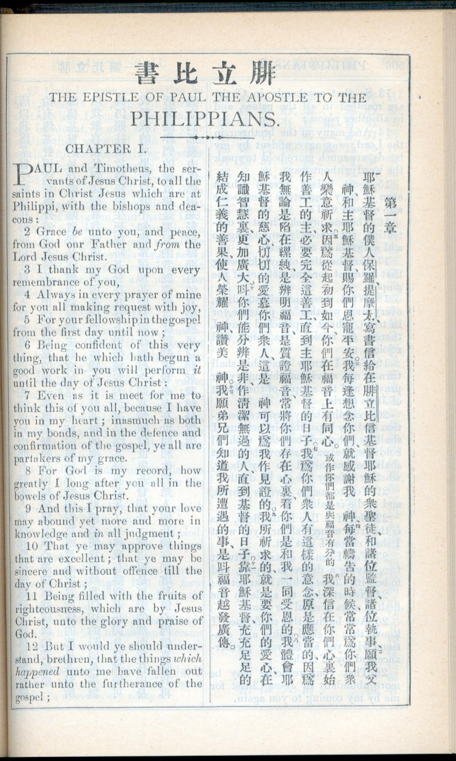 1908年新約全書(中西字) 腓立比書 1 章 1 節到 1 章 12 節