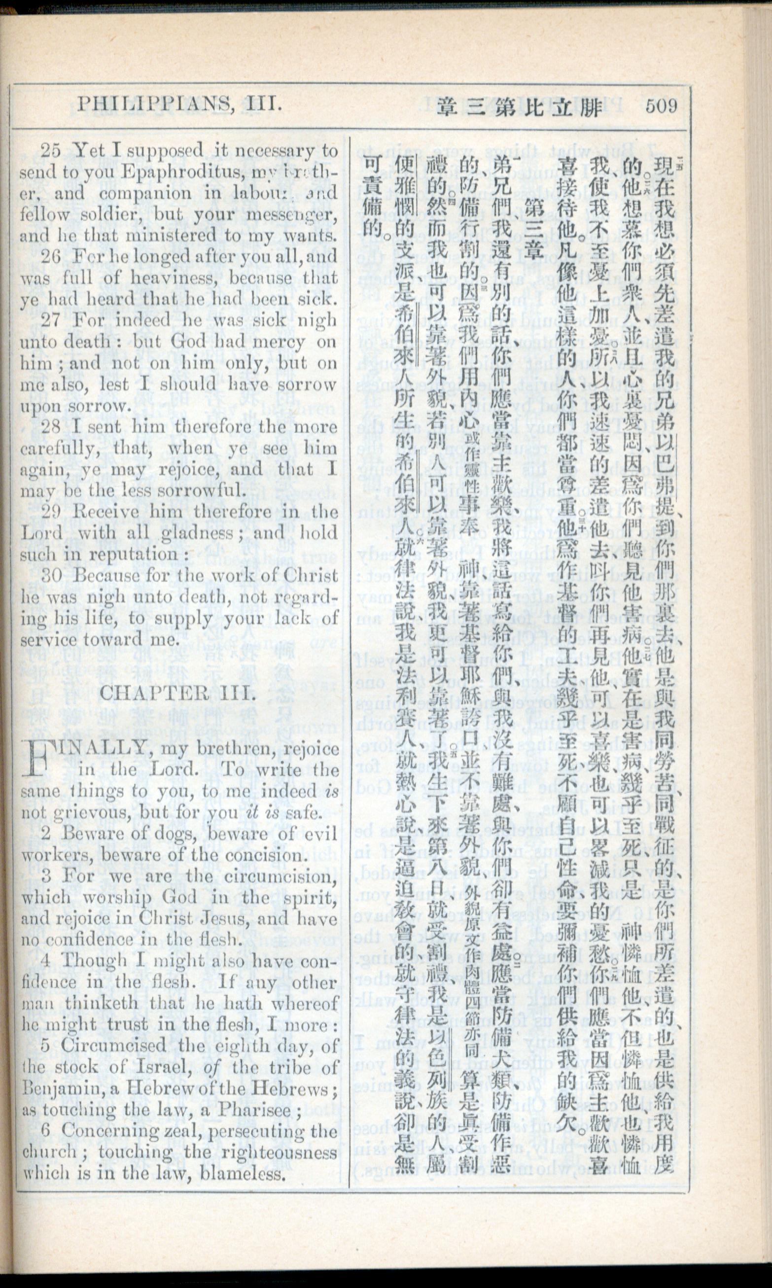 1908年新約全書(中西字) 腓立比書 2 章 25 節到 3 章 6 節
