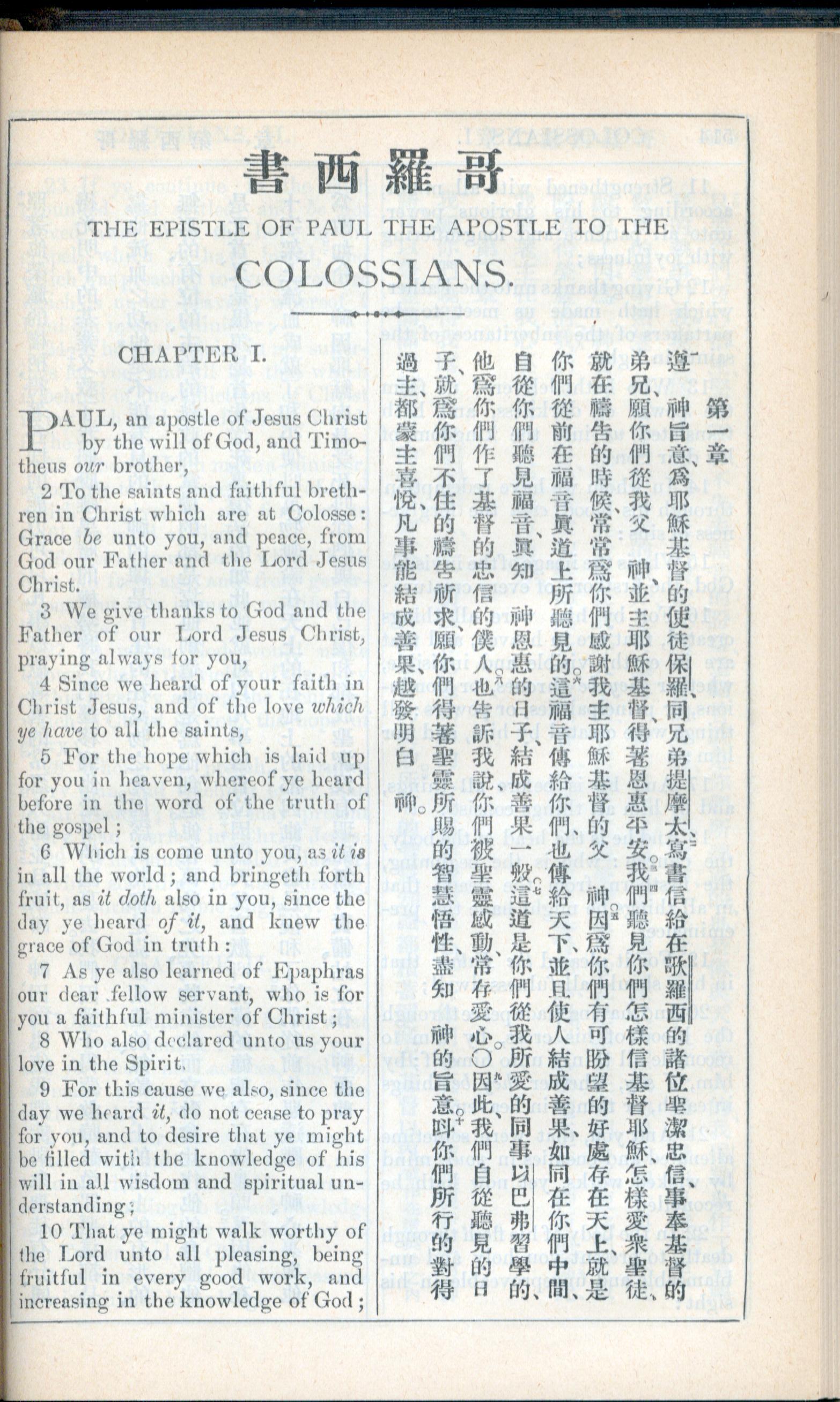 1908年新約全書(中西字) 歌羅西書 1 章 1 節到 1 章 10 節