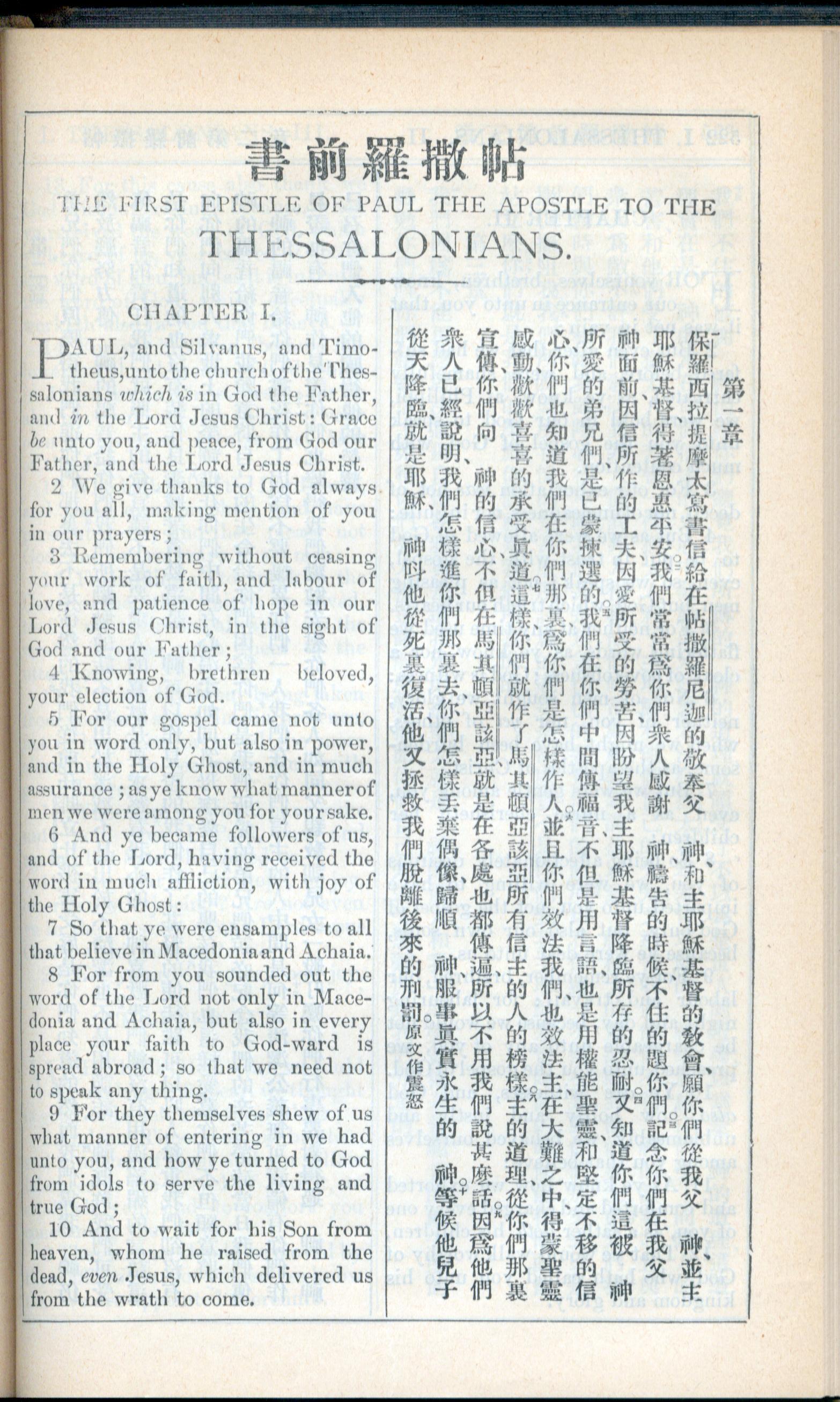 1908年新約全書(中西字) 帖撒羅尼迦前書 1 章 1 節到 1 章 10 節