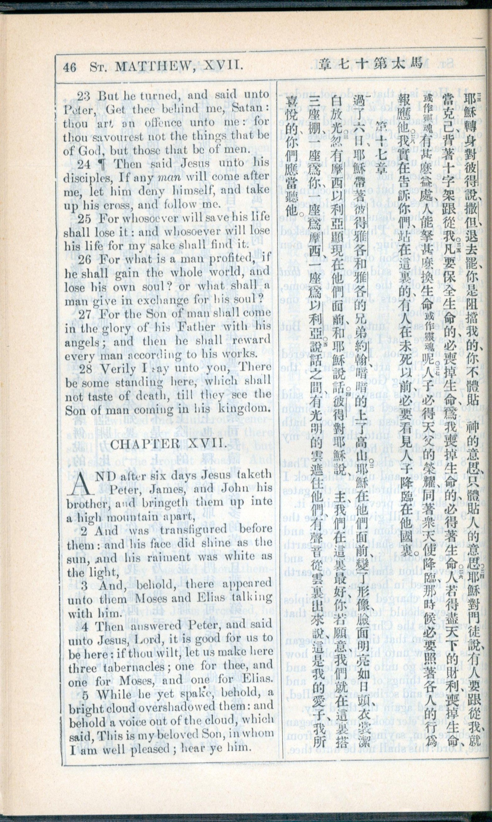 1908年新約全書(中西字) 馬太福音 16 章 23 節到 17 章 5 節