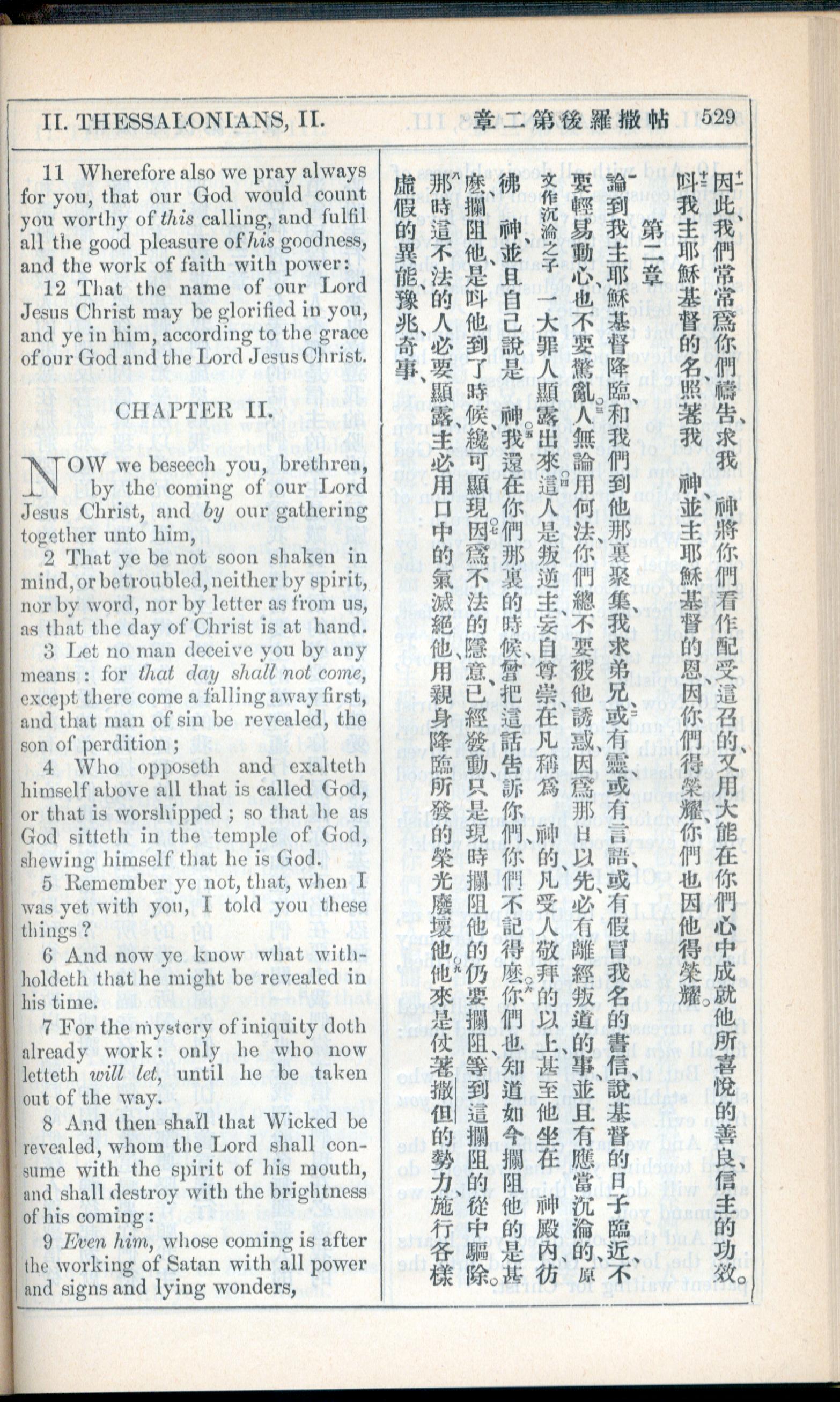 1908年新約全書(中西字) 帖撒羅尼迦後書 1 章 11 節到 2 章 9 節