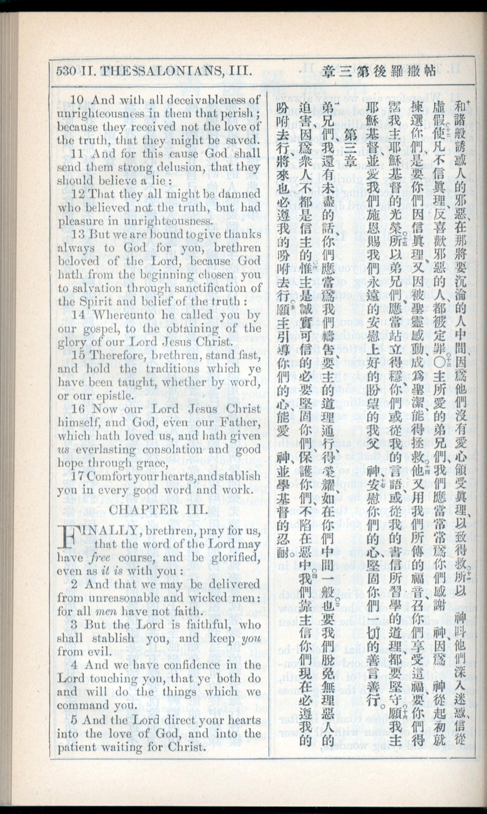 1908年新約全書(中西字) 帖撒羅尼迦後書 2 章 10 節到 3 章 5 節