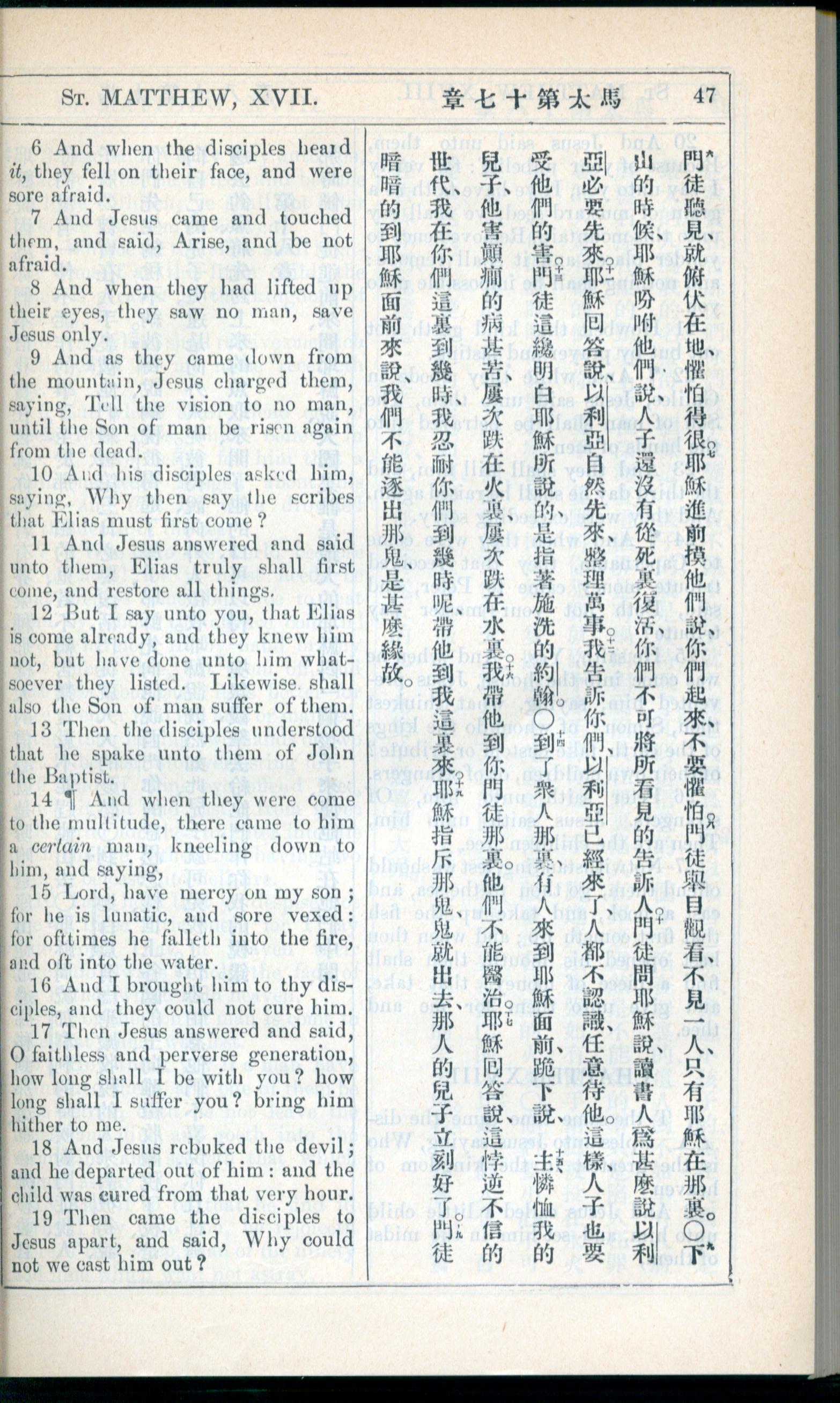 1908年新約全書(中西字) 馬太福音 17 章 6 節到 17 章 19 節