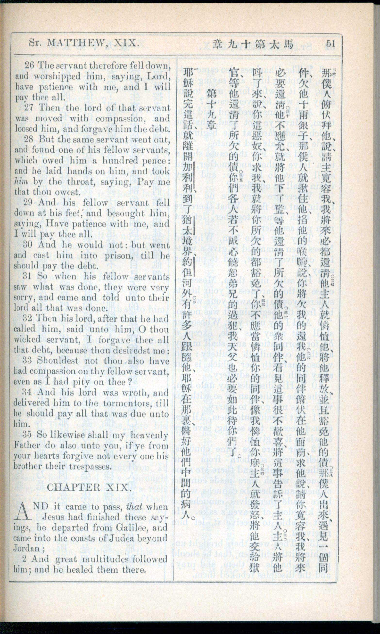 1908年新約全書(中西字) 馬太福音 18 章 26 節到 19 章 2 節
