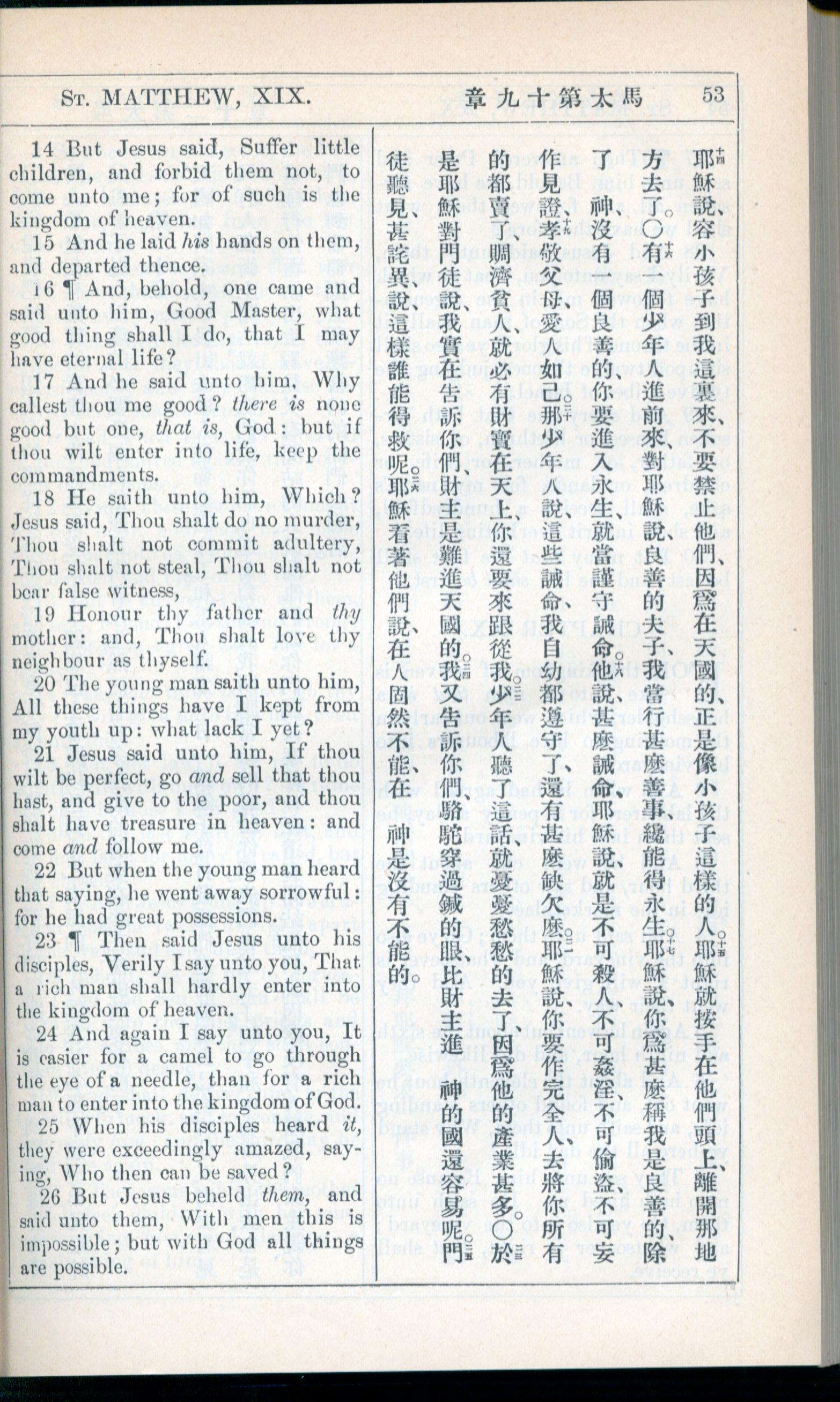 1908年新約全書(中西字) 馬太福音 19 章 14 節到 19 章 26 節