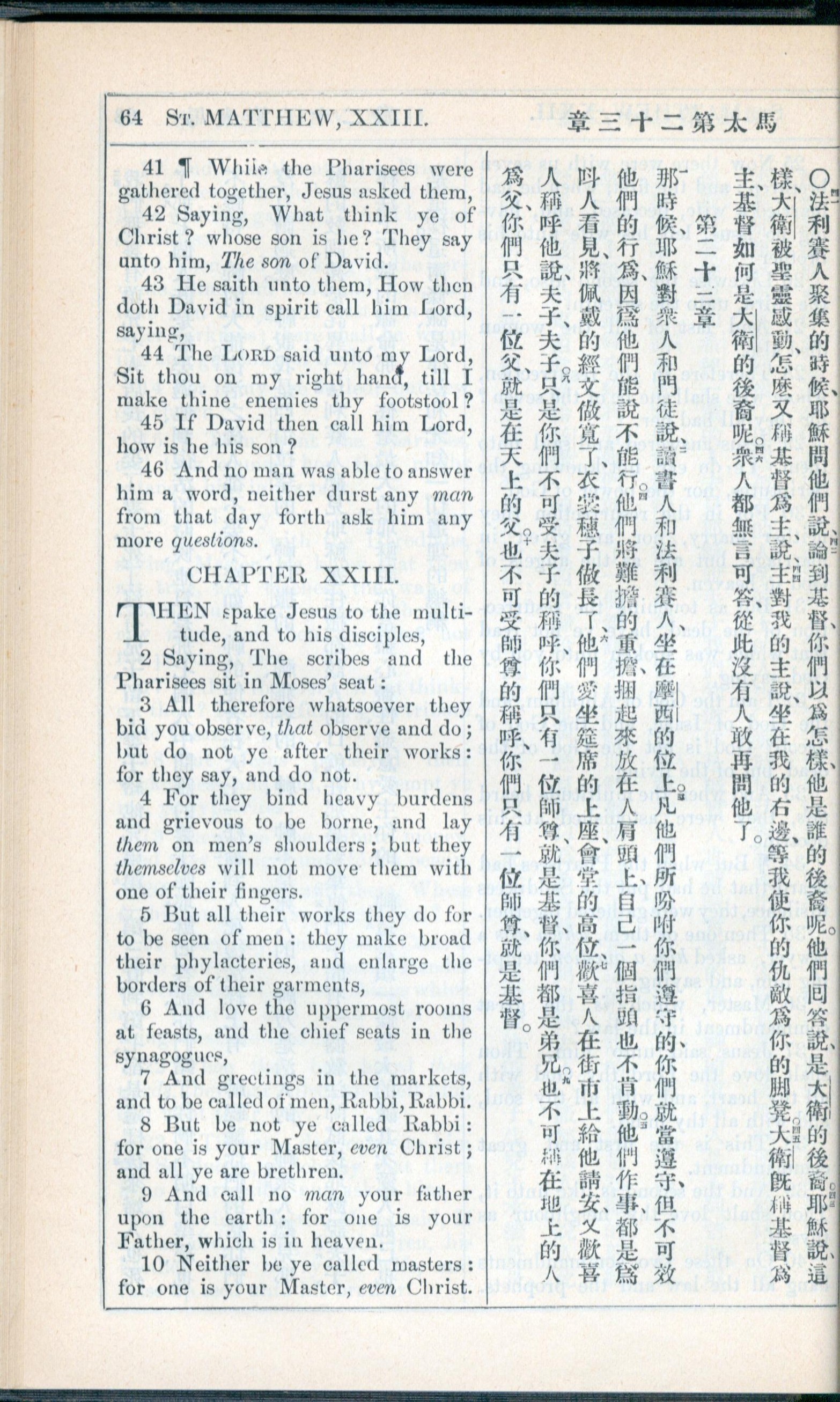 1908年新約全書(中西字) 馬太福音 22 章 41 節到 23 章 10 節