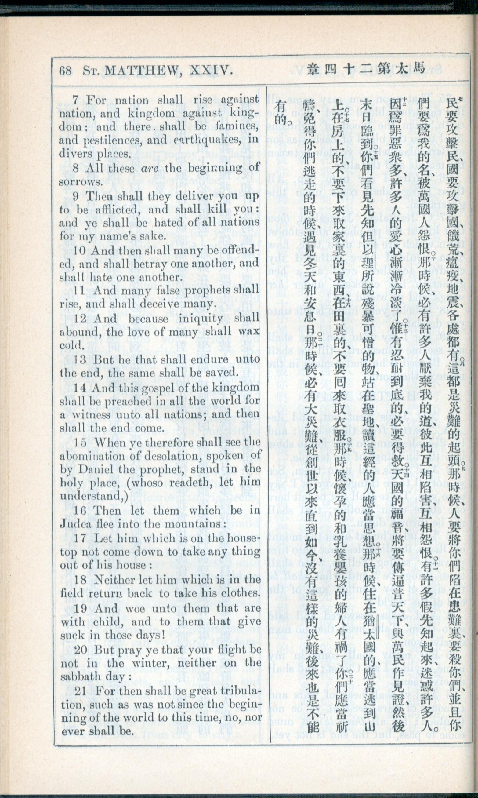 1908年新約全書(中西字) 馬太福音 24 章 7 節到 24 章 21 節