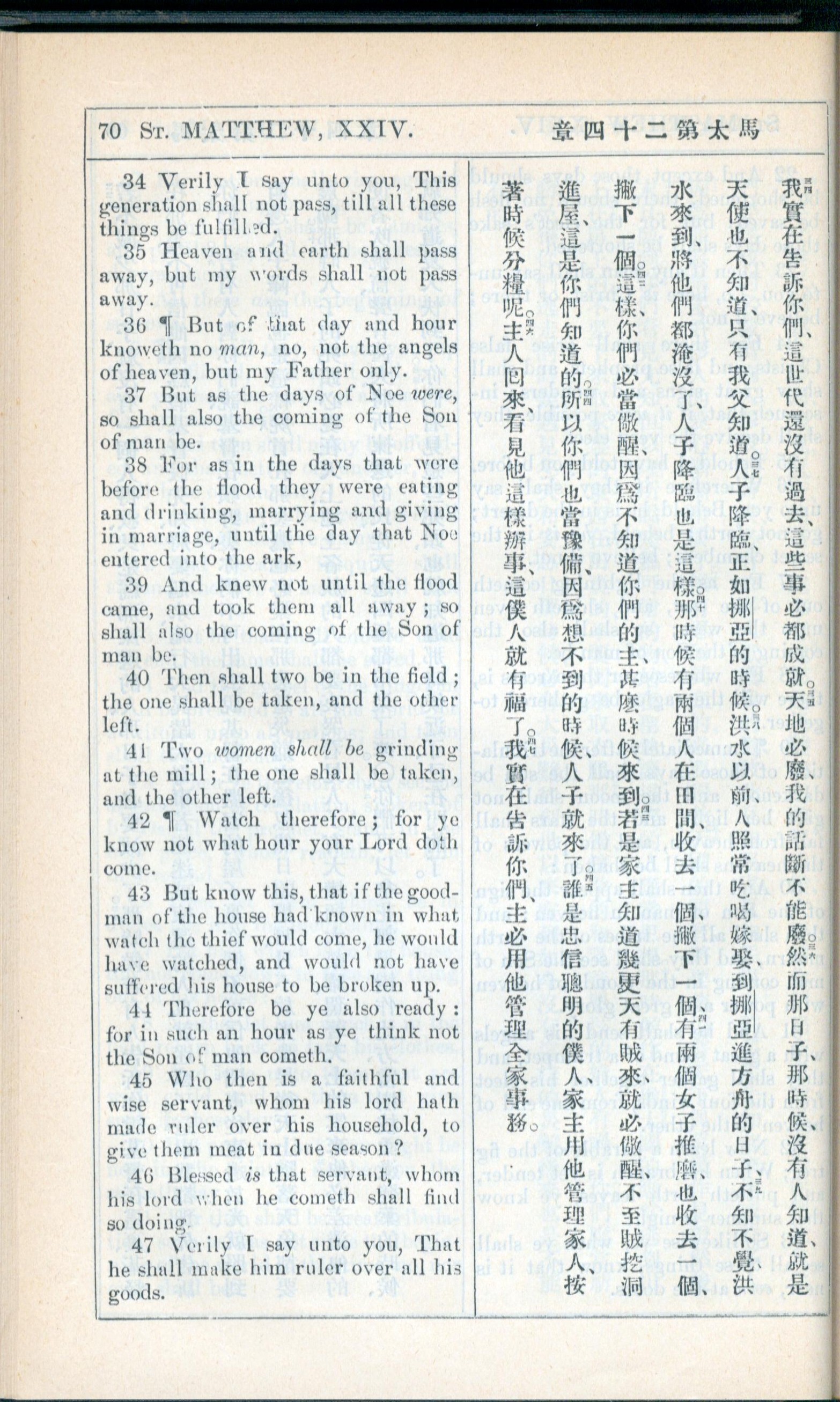 1908年新約全書(中西字) 馬太福音 24 章 34 節到 24 章 47 節