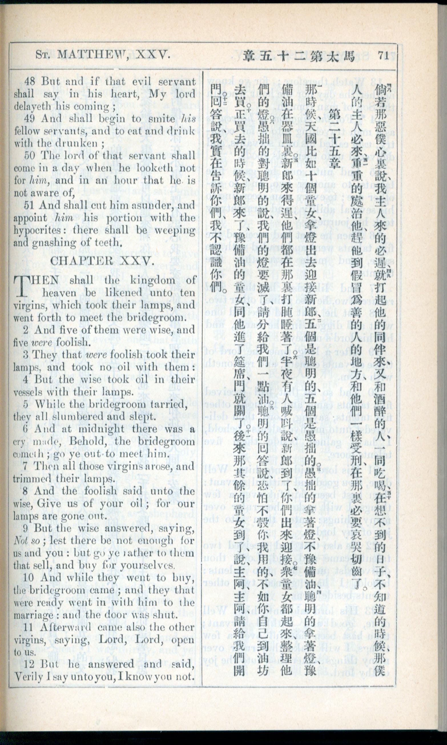 1908年新約全書(中西字) 馬太福音 24 章 48 節到 25 章 12 節