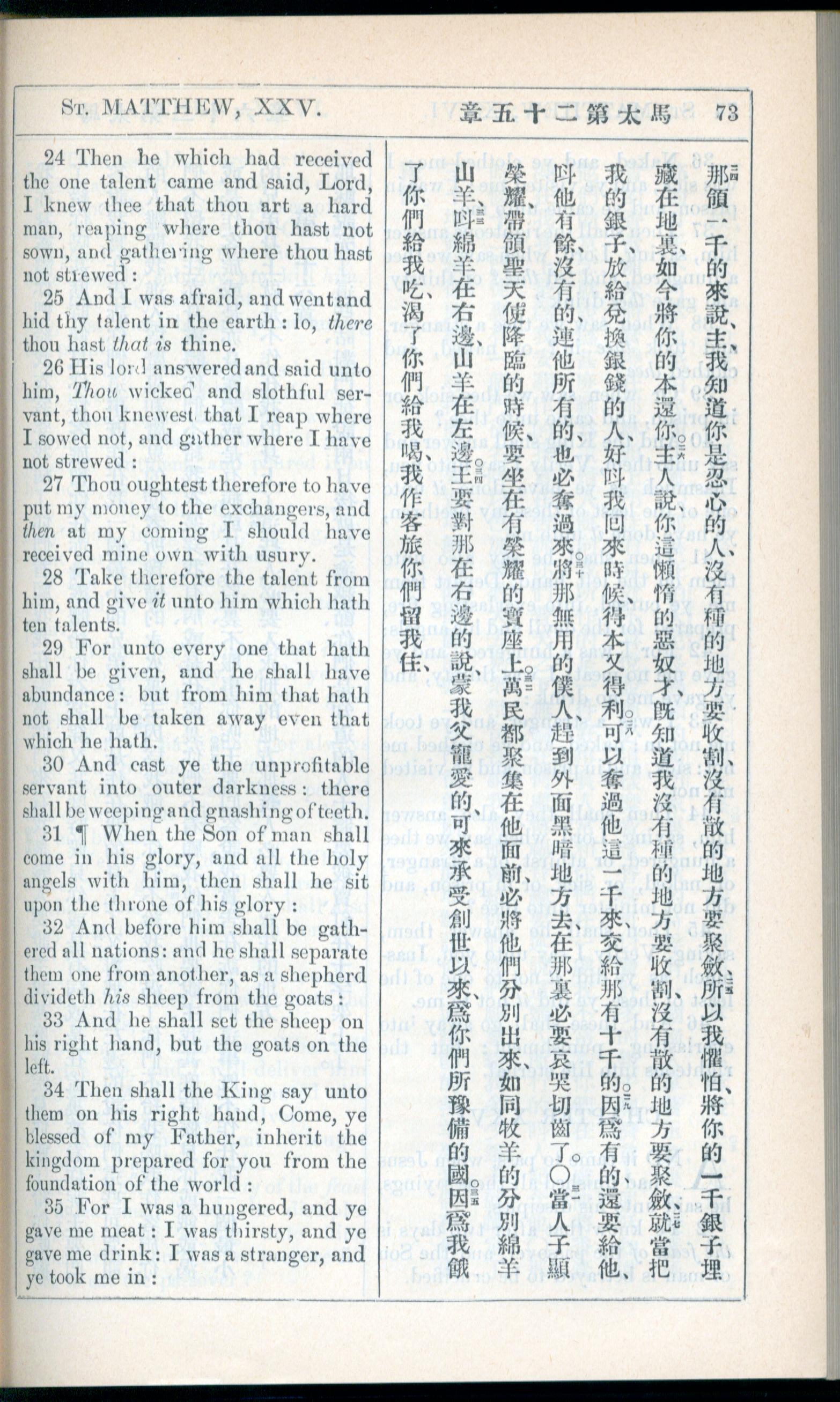 1908年新約全書(中西字) 馬太福音 25 章 24 節到 25 章 35 節