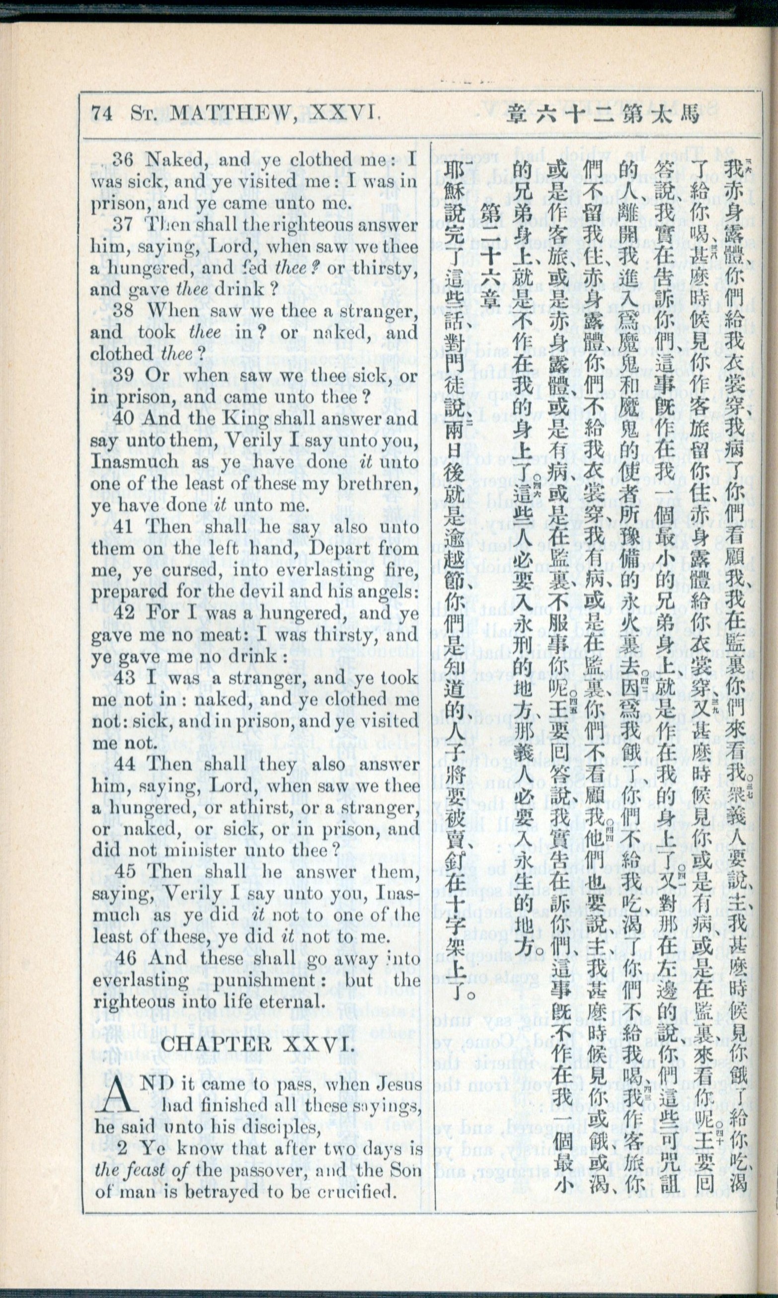 1908年新約全書(中西字) 馬太福音 25 章 36 節到 26 章 2 節