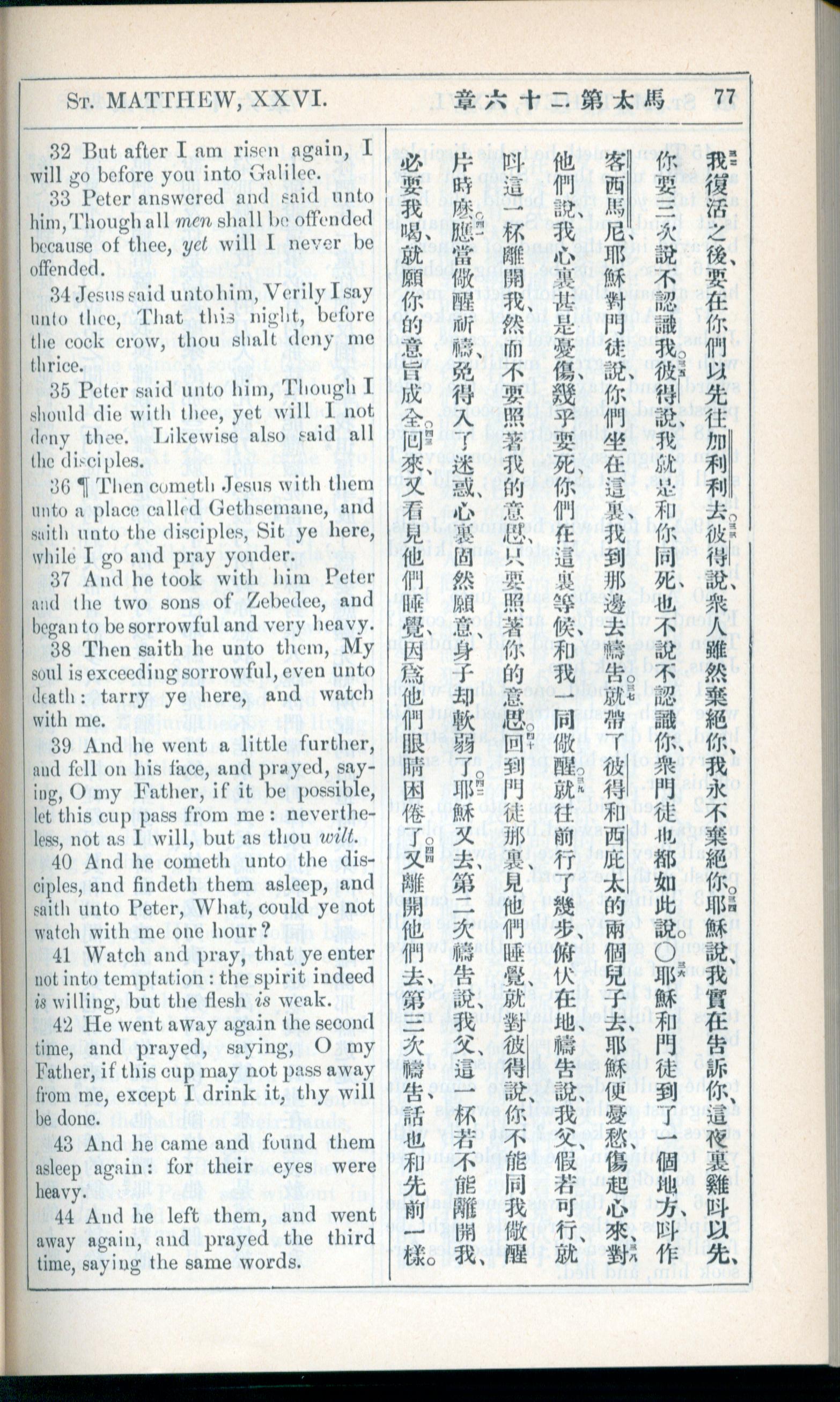 1908年新約全書(中西字) 馬太福音 26 章 32 節到 26 章 44 節