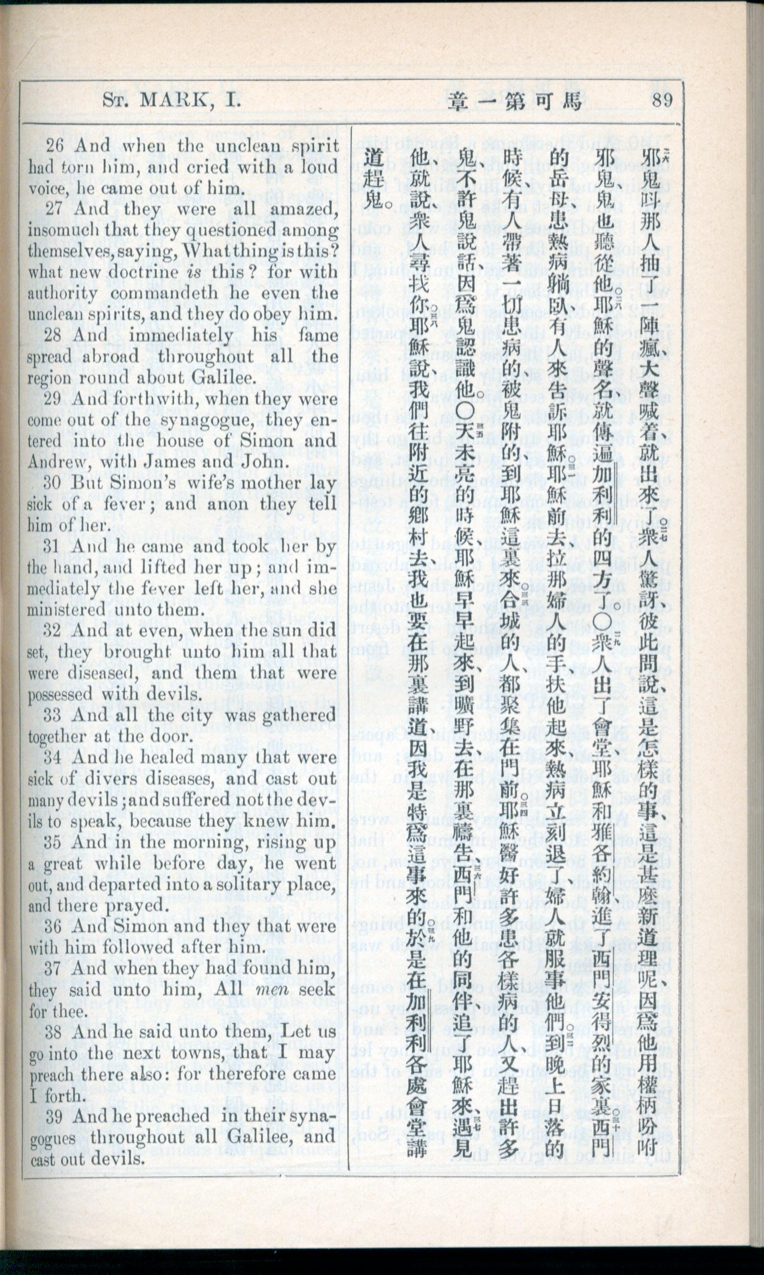 1908年新約全書(中西字) 馬可福音 1 章 26 節到 1 章 39 節