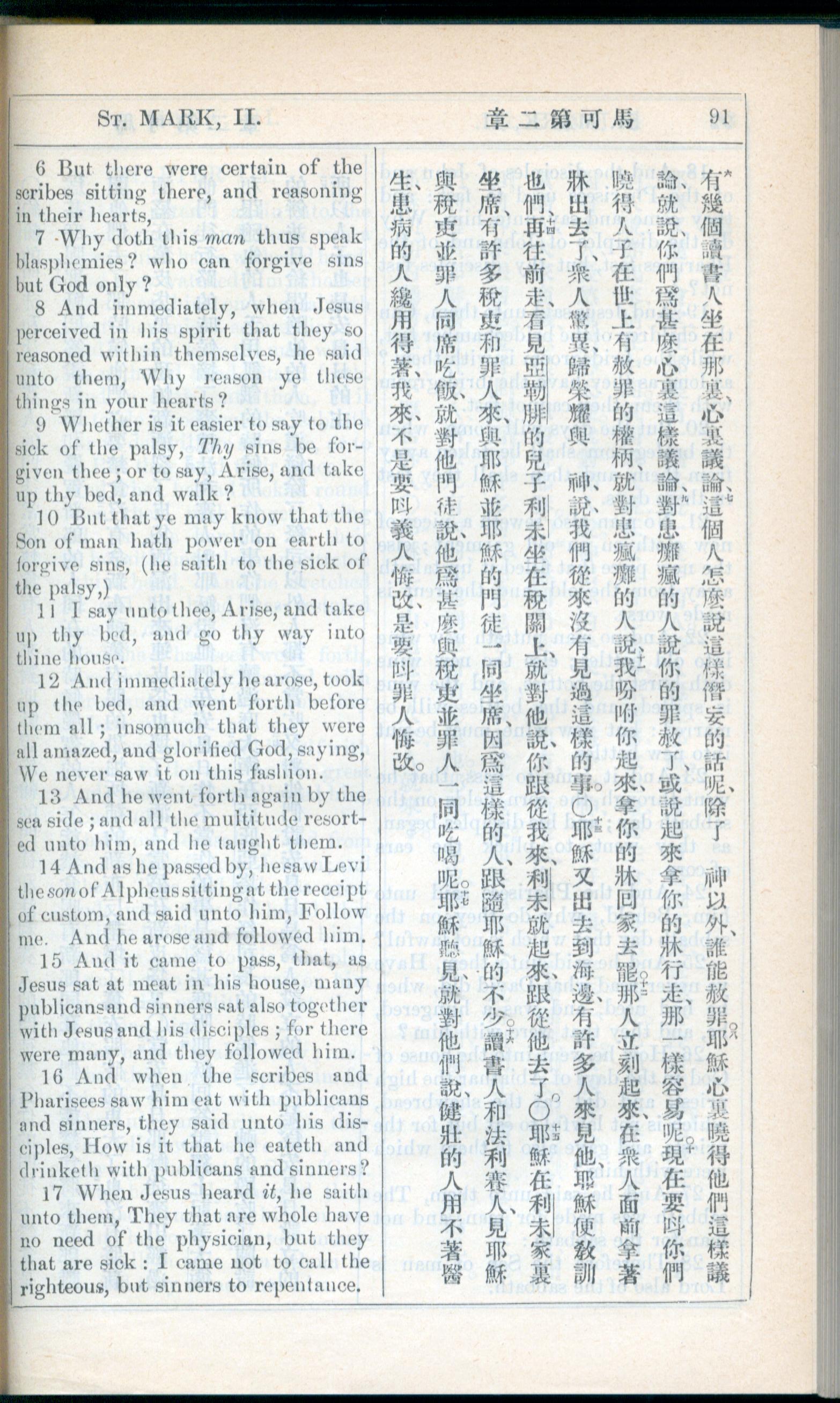 1908年新約全書(中西字) 馬可福音 2 章 6 節到 2 章 17 節