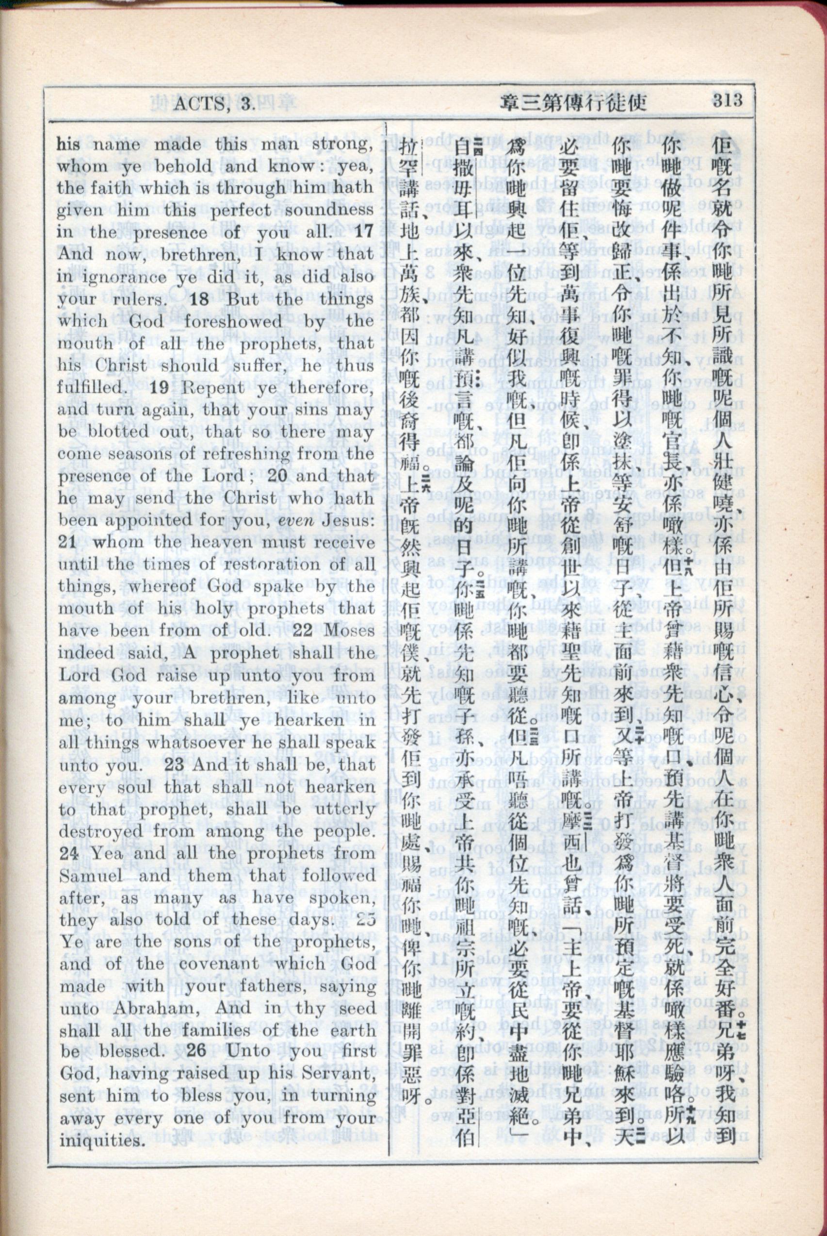1931年新約全書廣東話新譯本與美國新譯英文 使徒行傳 3 章 17 節到 3 章 26 節