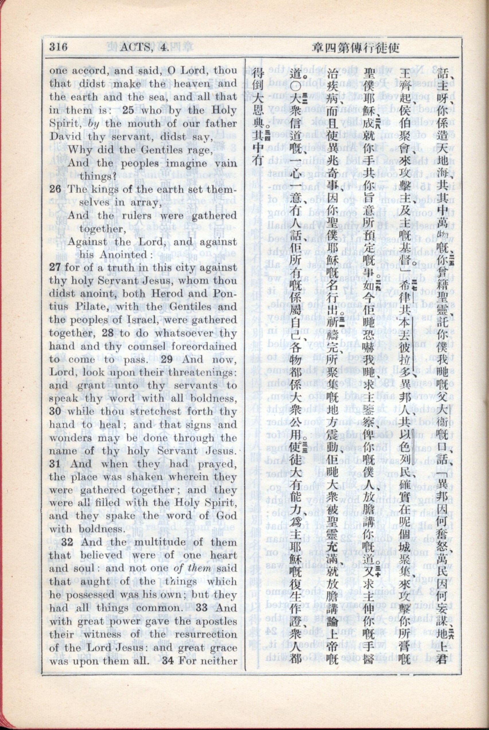 1931年新約全書廣東話新譯本與美國新譯英文 使徒行傳 4 章 25 節到 4 章 33 節