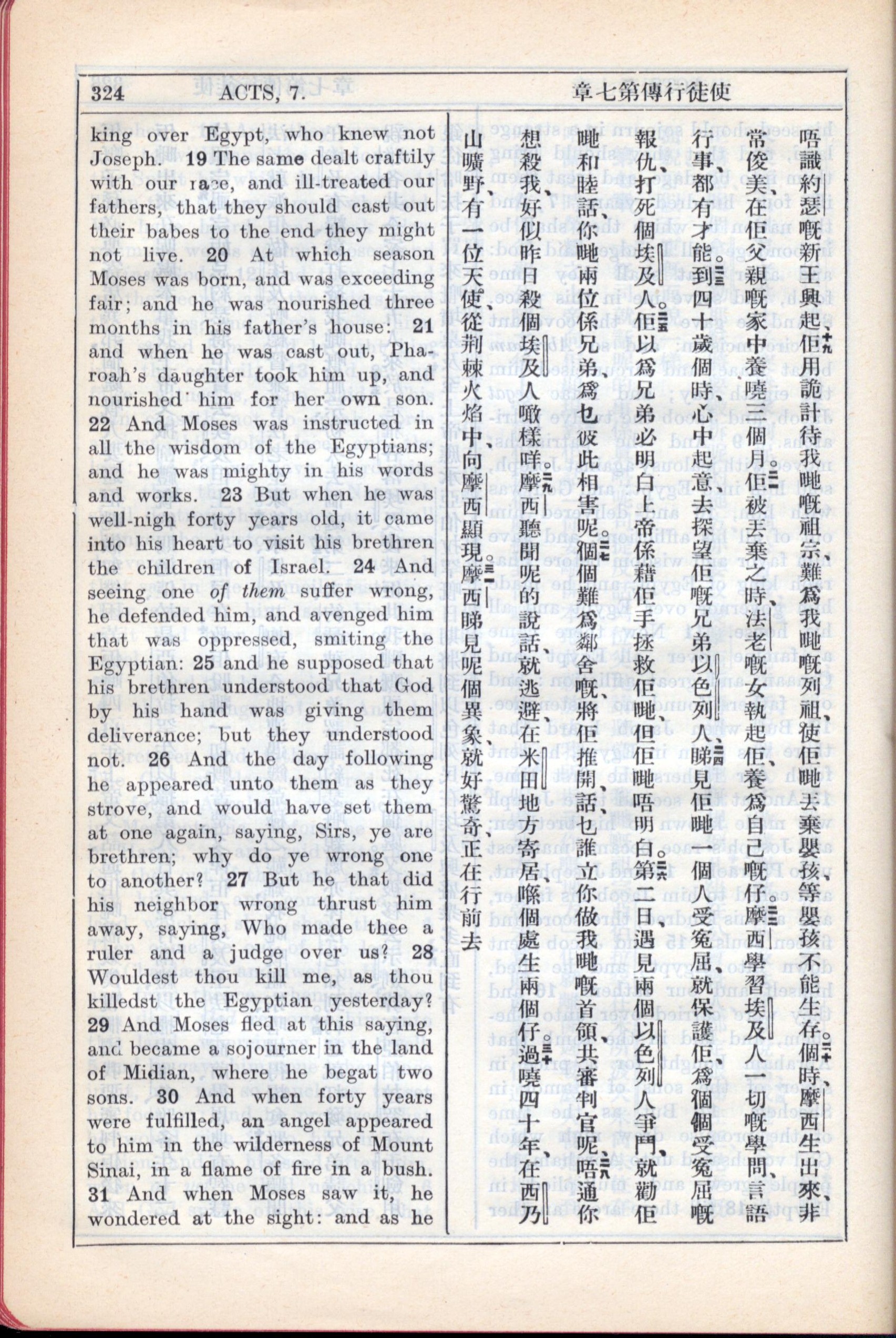 1931年新約全書廣東話新譯本與美國新譯英文 使徒行傳 7 章 19 節到 7 章 31 節