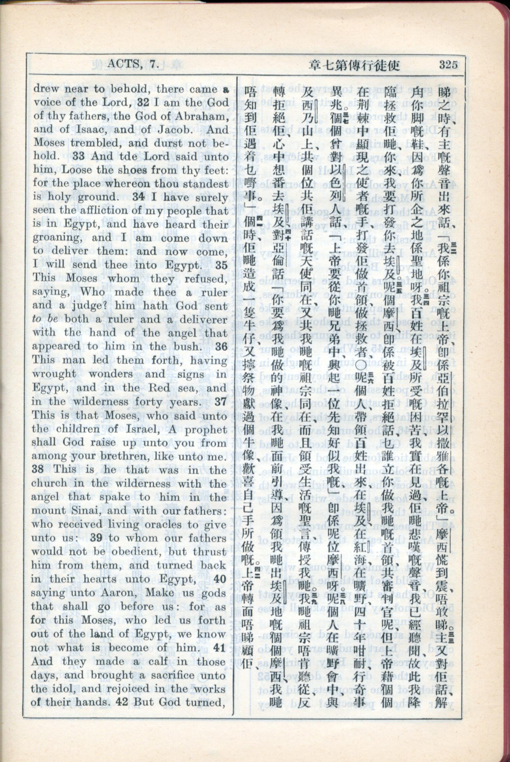 1931年新約全書廣東話新譯本與美國新譯英文 使徒行傳 7 章 32 節到 7 章 41 節