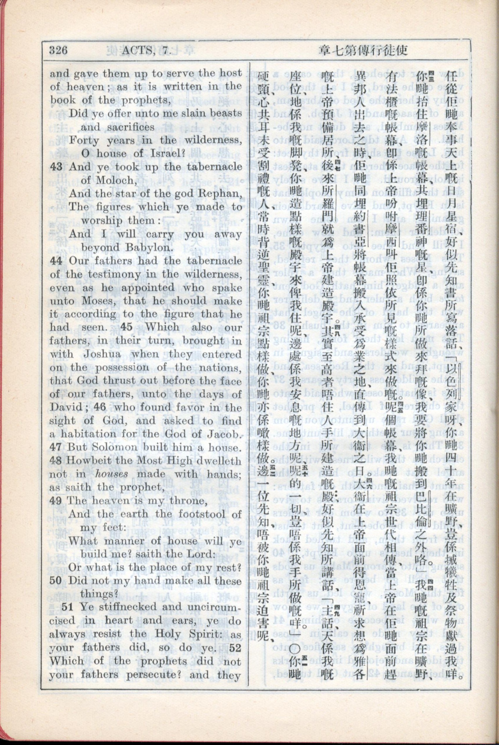 1931年新約全書廣東話新譯本與美國新譯英文 使徒行傳 7 章 42 節到 7 章 52 節