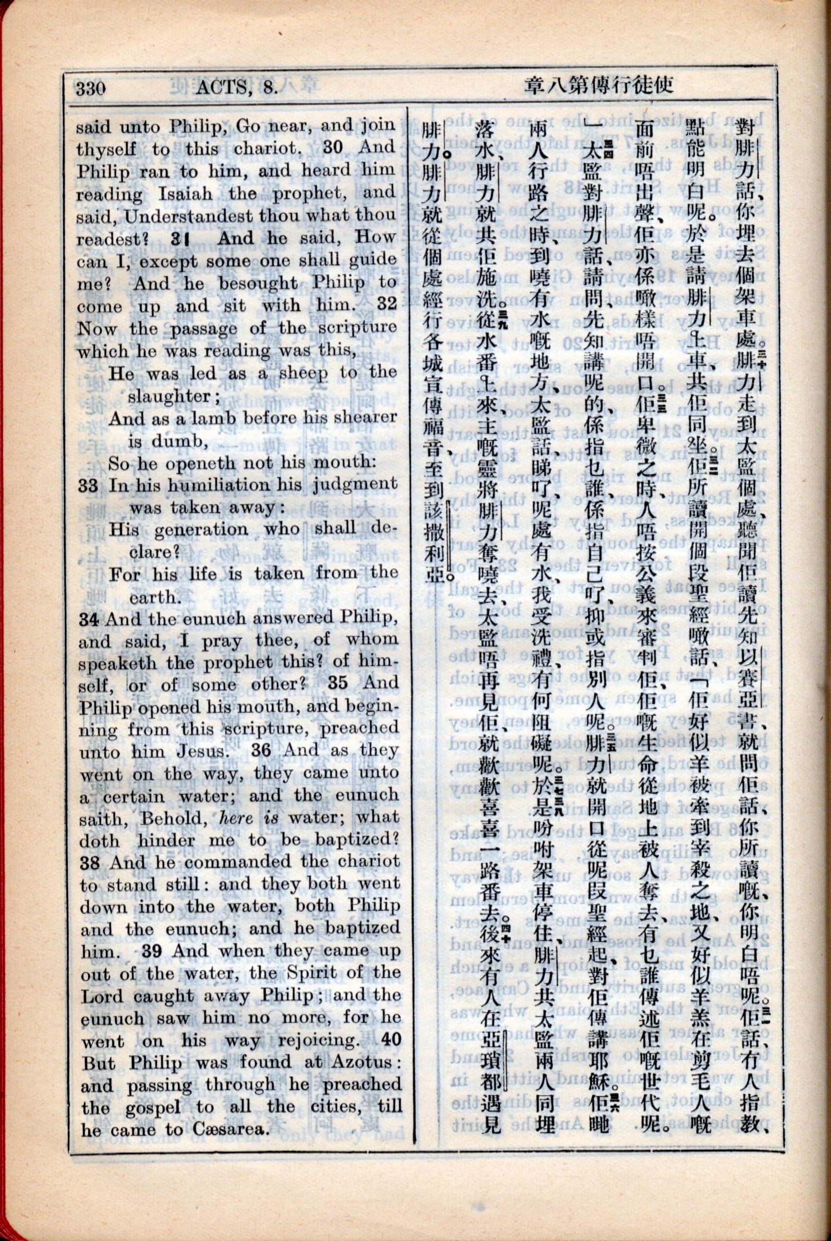 1931年新約全書廣東話新譯本與美國新譯英文 使徒行傳 8 章 30 節到 8 章 40 節