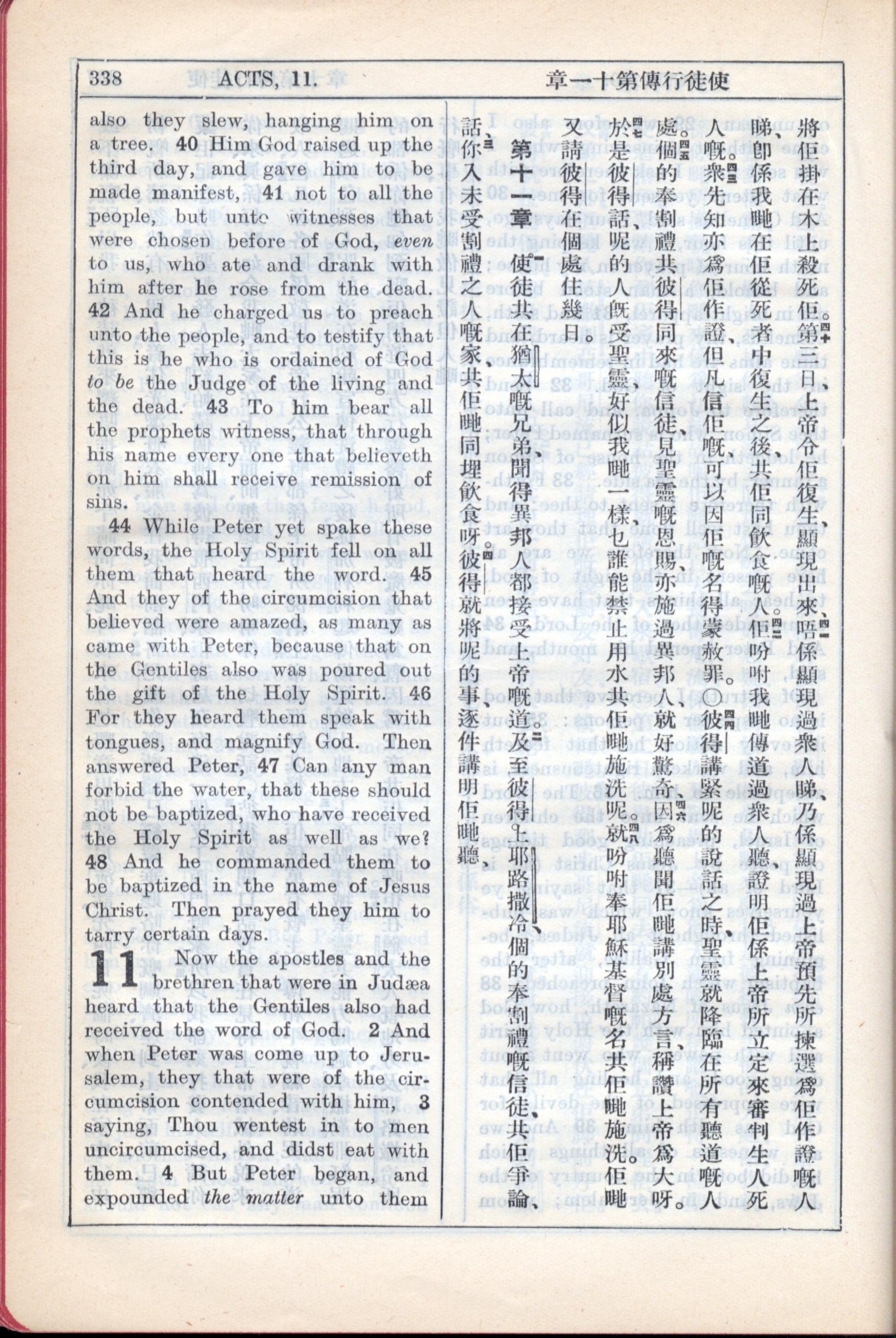 1931年新約全書廣東話新譯本與美國新譯英文 使徒行傳 10 章 40 節到 11 章 4 節