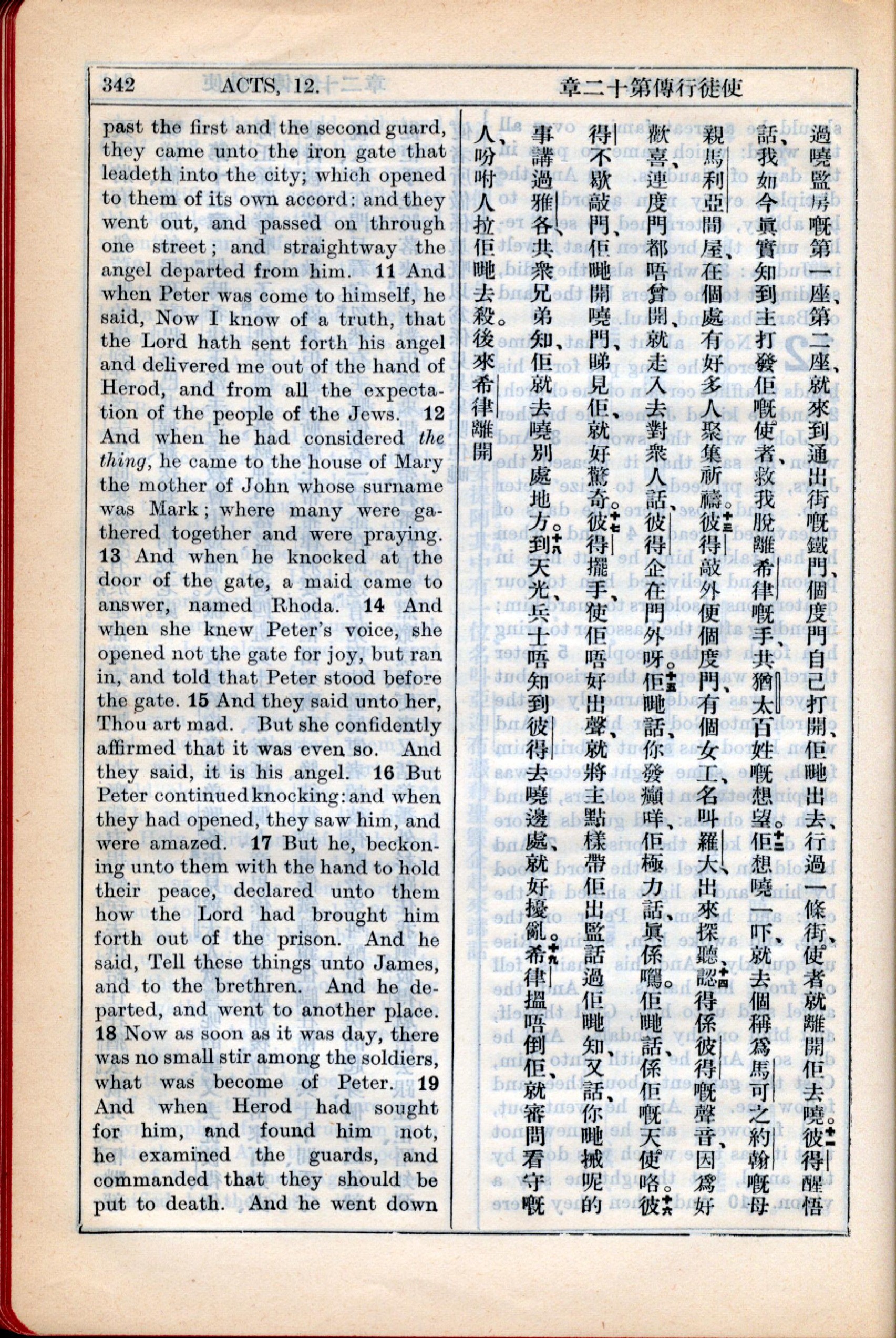 1931年新約全書廣東話新譯本與美國新譯英文 使徒行傳 12 章 10 節到 12 章 19 節